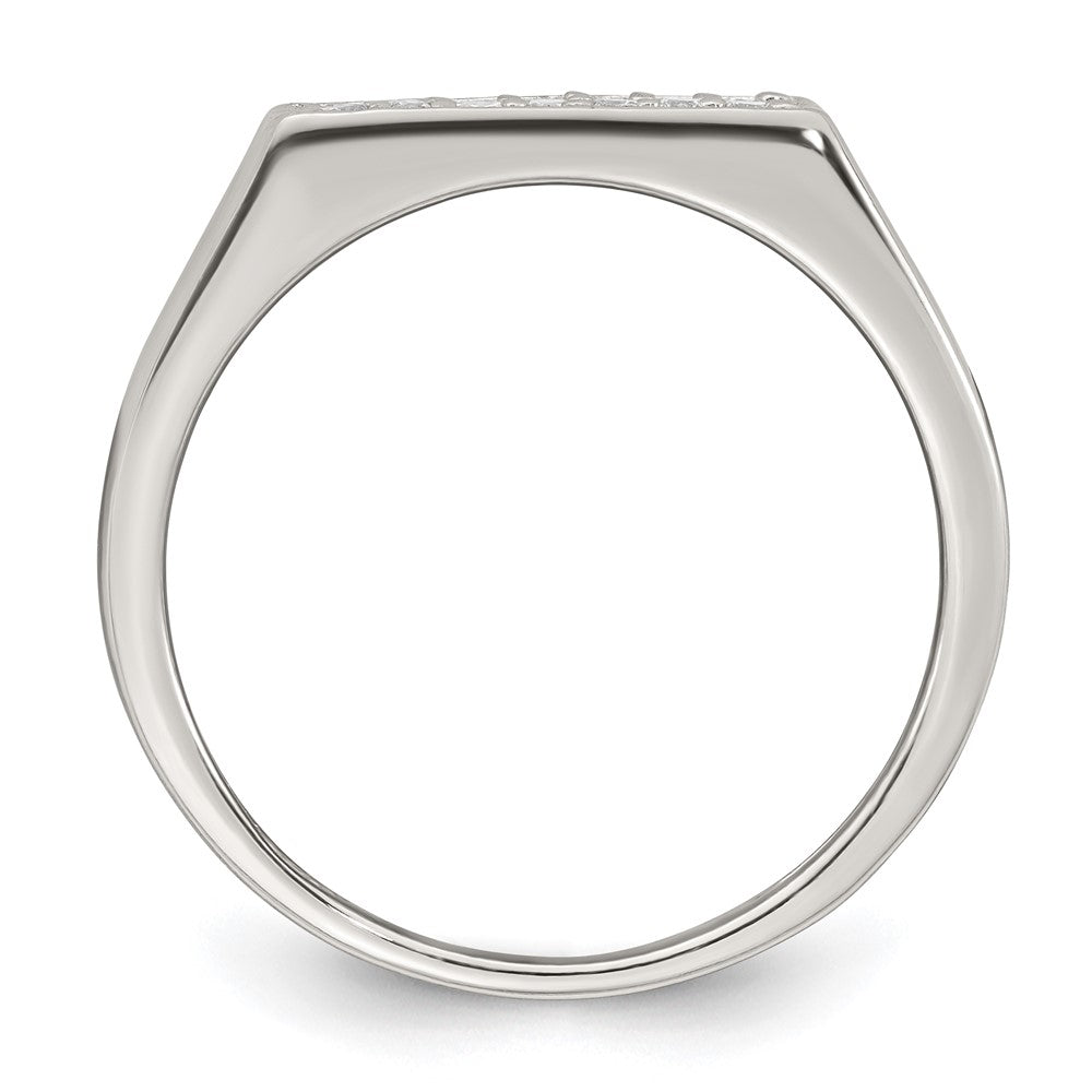 Sterling Silver Polished White CZ Rectangular Size 11 Mens Ring