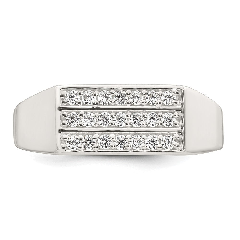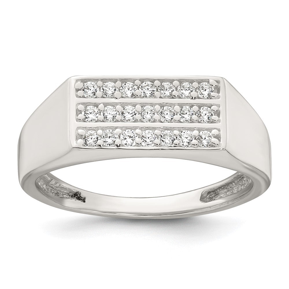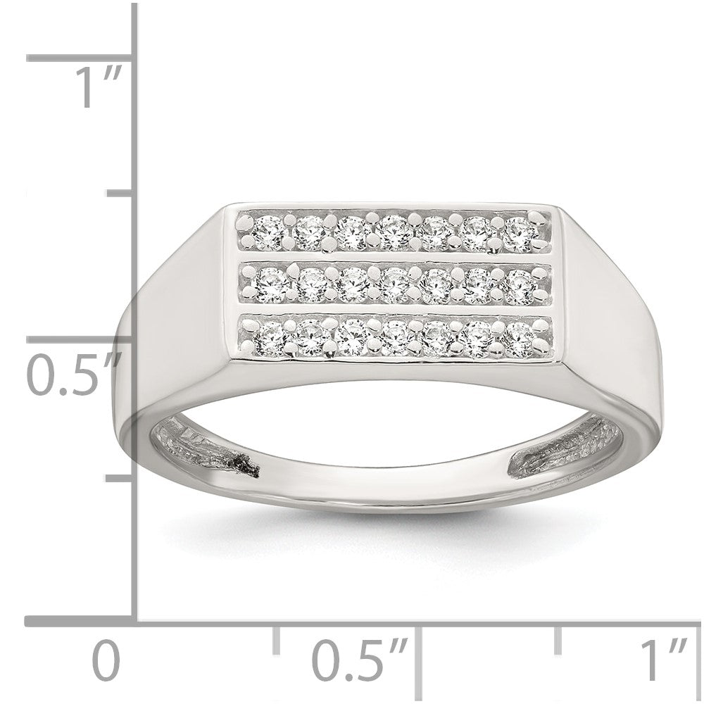 Sterling Silver Polished White CZ Rectangular Size 9 Mens Ring