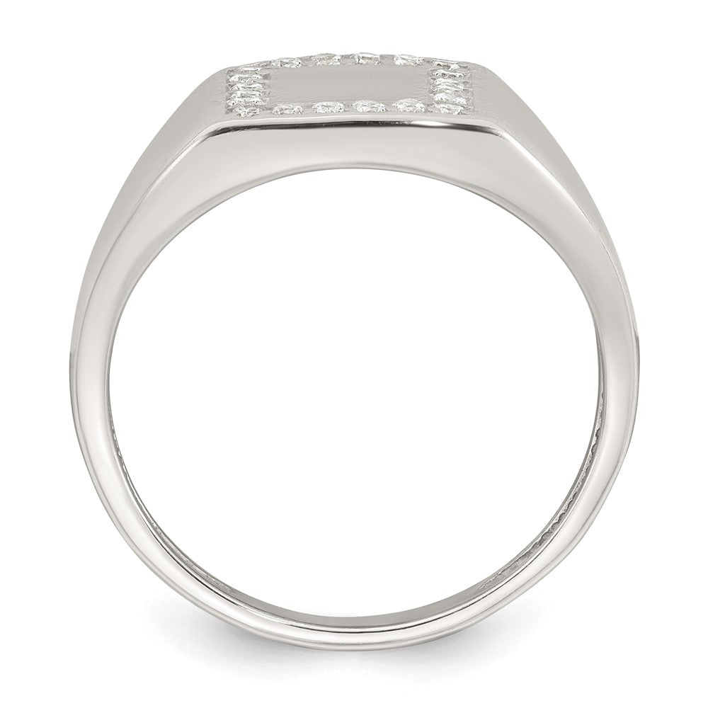 Sterling Silver Polished White CZ Square Border Size 11 Mens Signet Ring