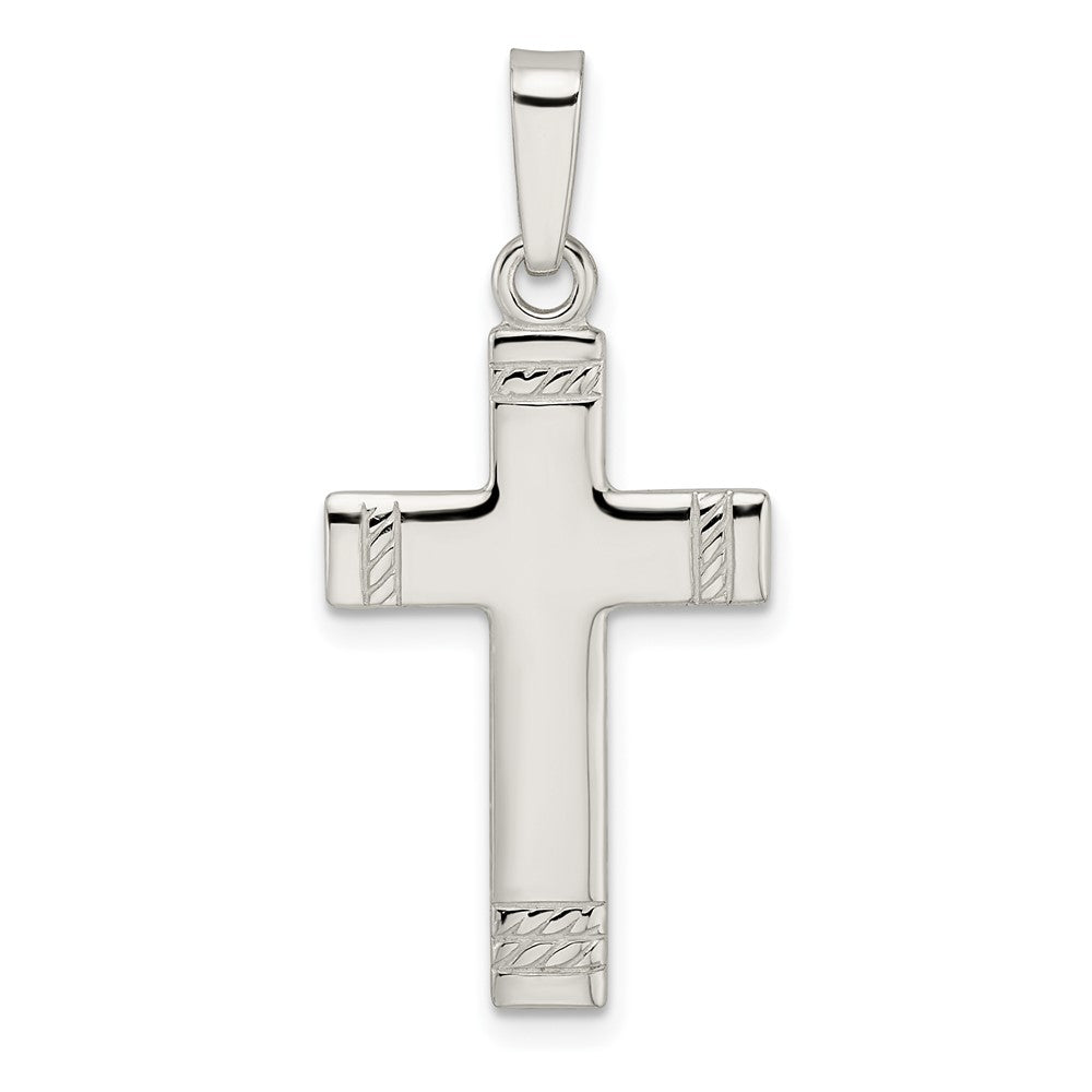 Sterling Silver Polished w/Rope Ends Latin Cross Pendant