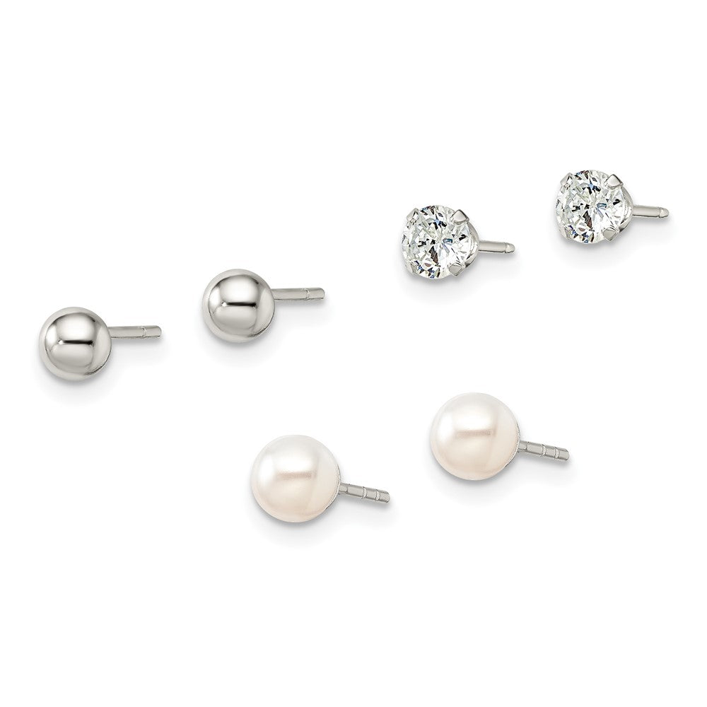Sterling Silver Post 3pc Stellux Crystal and FWC Pearl Post Earring Set