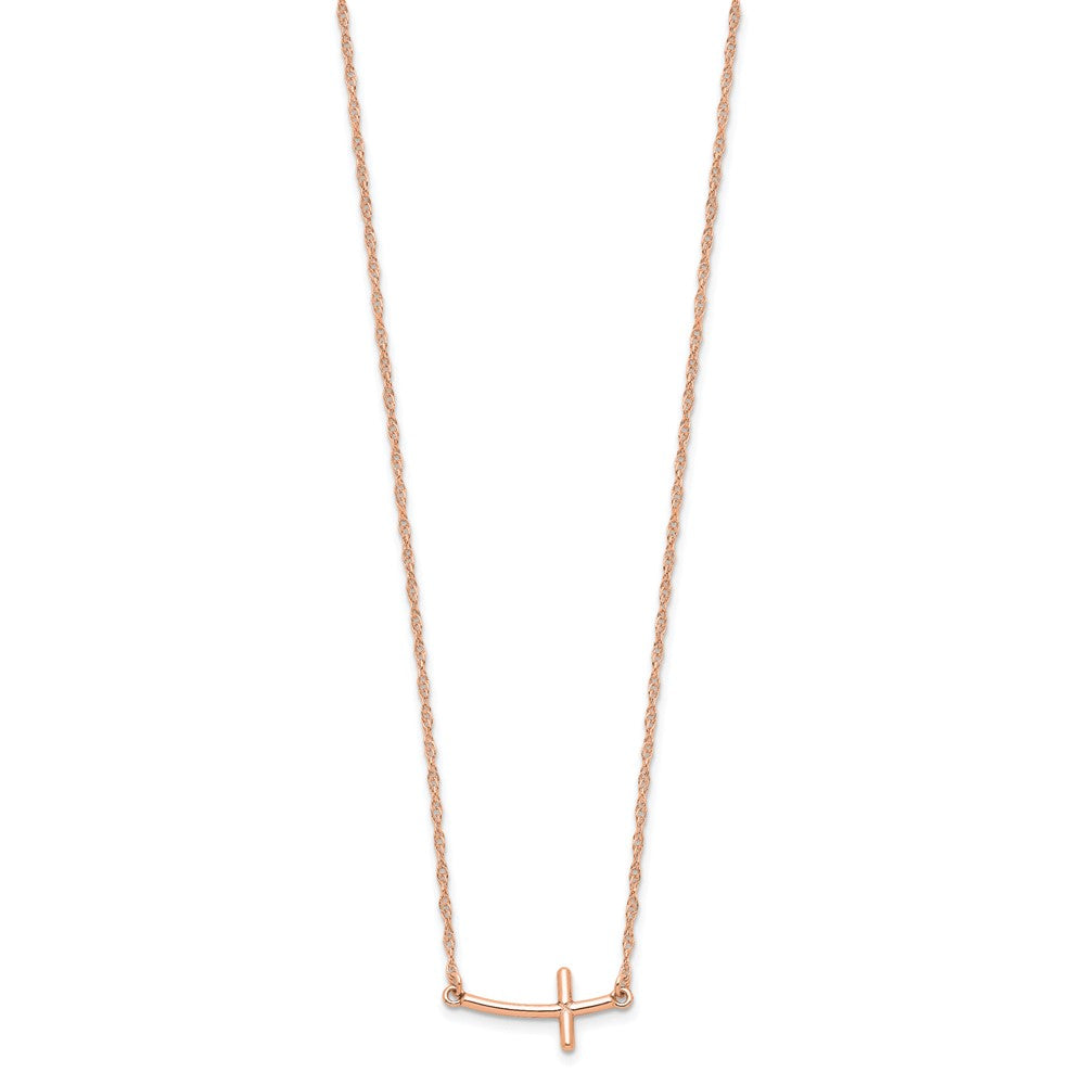 Sterling Silver RG-plated Small Sideways Curved Cross Necklace