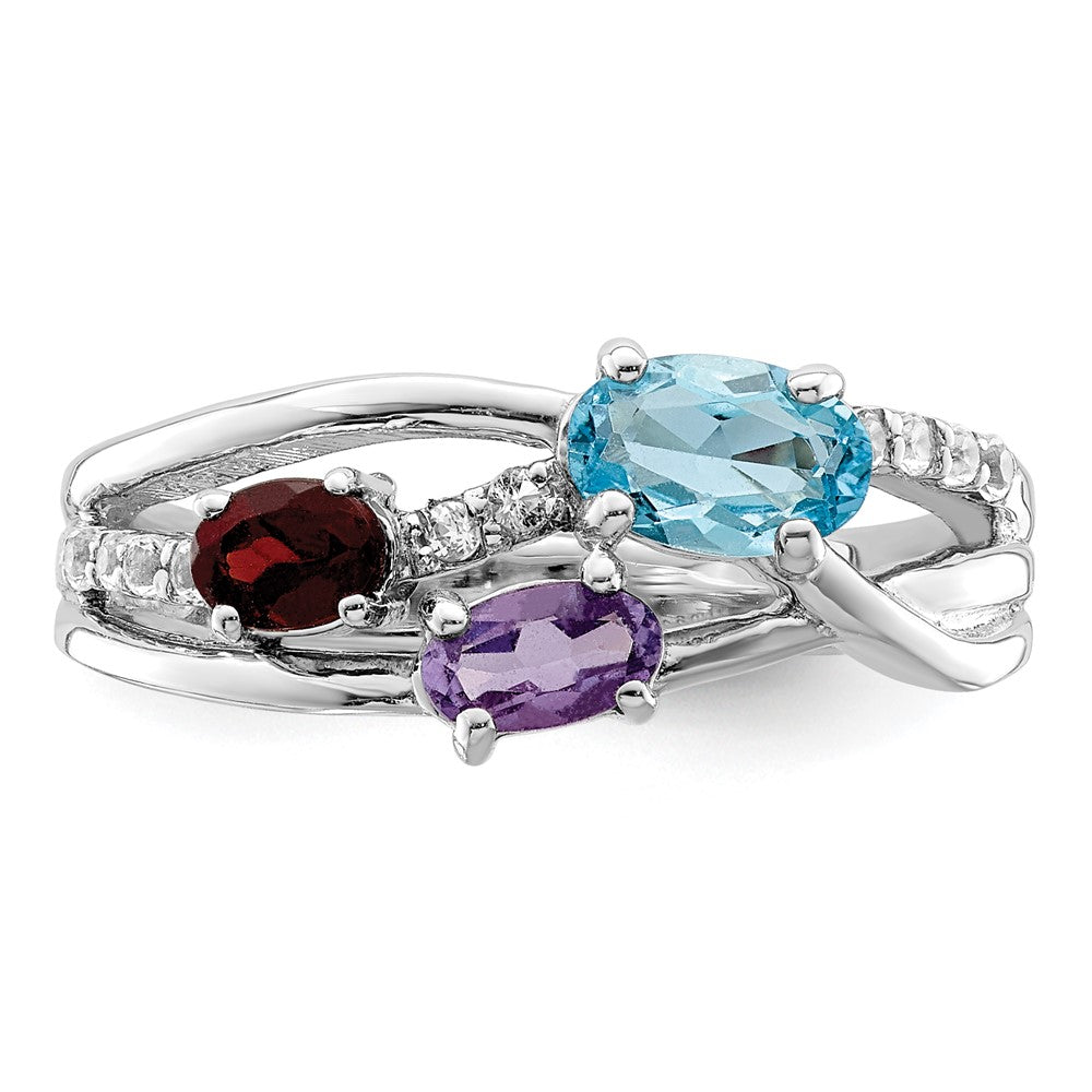 Sterling Silver RH-plated 1.15t.w. BT/AM/GA/WT Oval Ring