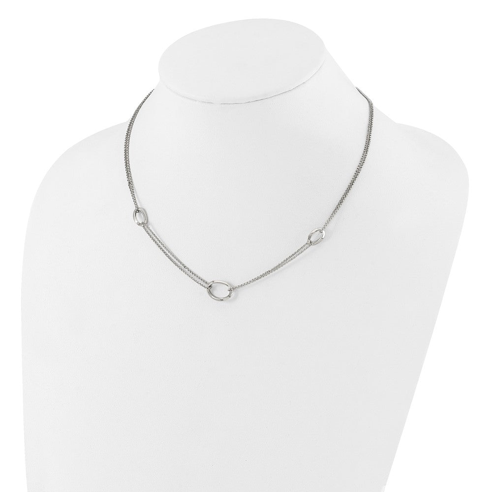 Sterling Silver Rh-plated 18in w/2in ext Fancy 2-Strand Ovals Necklace