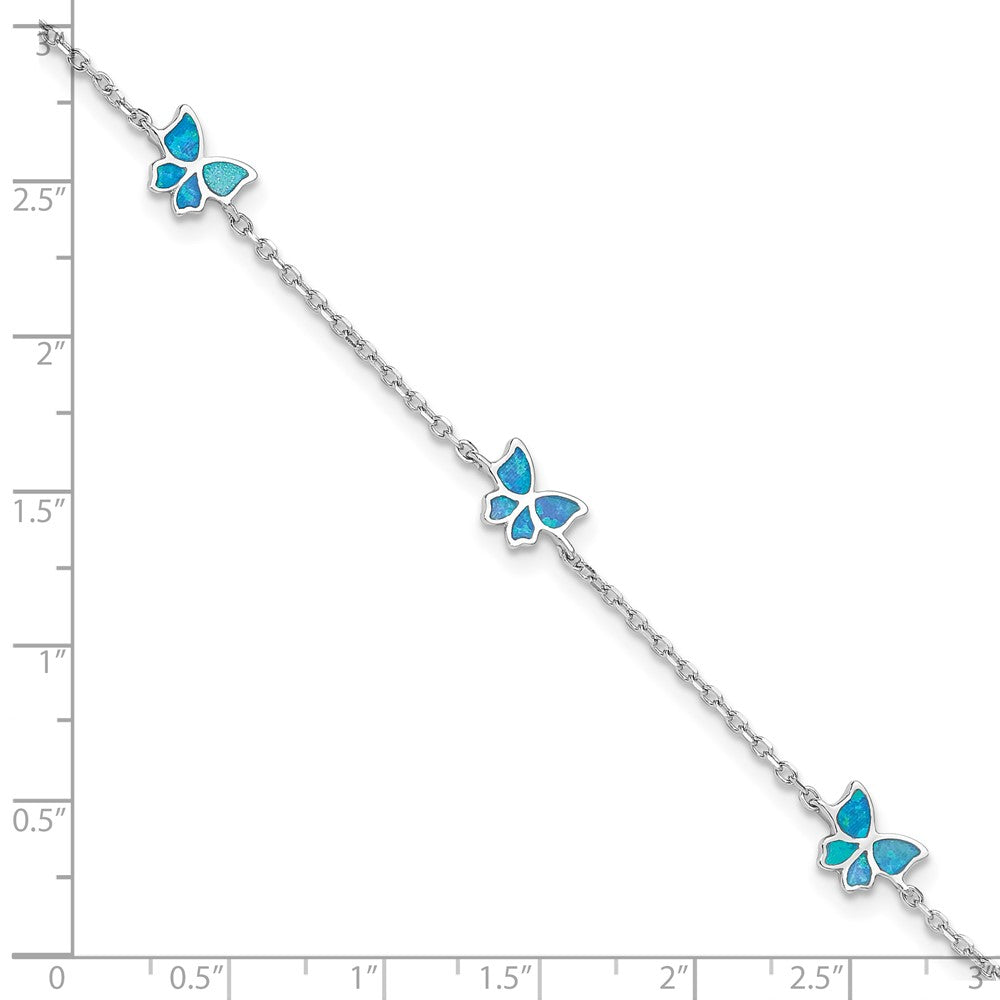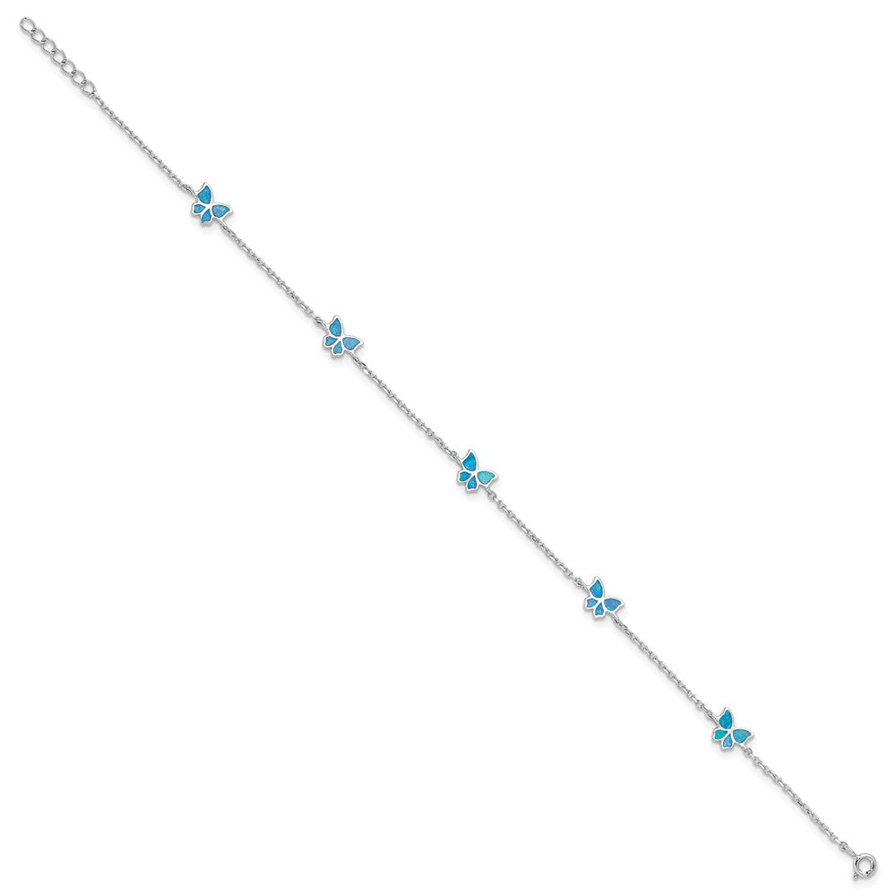 Sterling Silver RH-plated Blue Cr. Opal Butterflies 9in Plus .5in ext Ankle