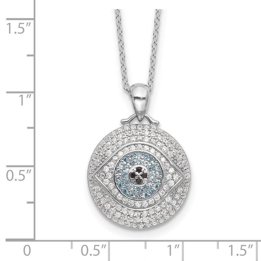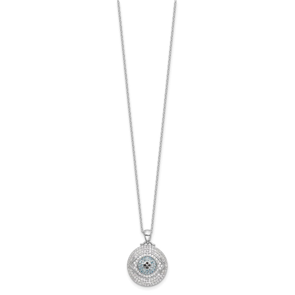 Sterling Silver Rh-plated Created Blue Spinel and CZ Evil Eye 18in Necklace