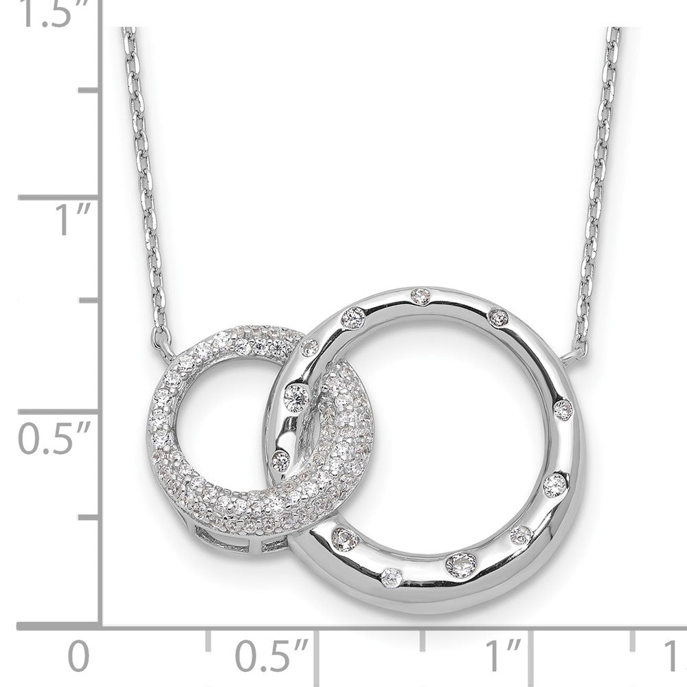 Sterling Silver Rh-plated CZ Interlocking Circles w/1.75in ext Necklace