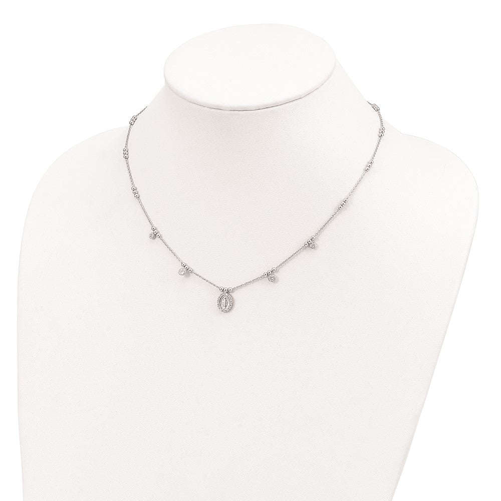 Sterling Silver RH-plated CZ Miraculous Medal w/1.5in ext. Necklace