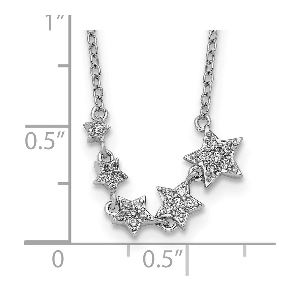 Sterling Silver Rh-Plated Graduating CZ Stars w/ 2in Ext. Necklace
