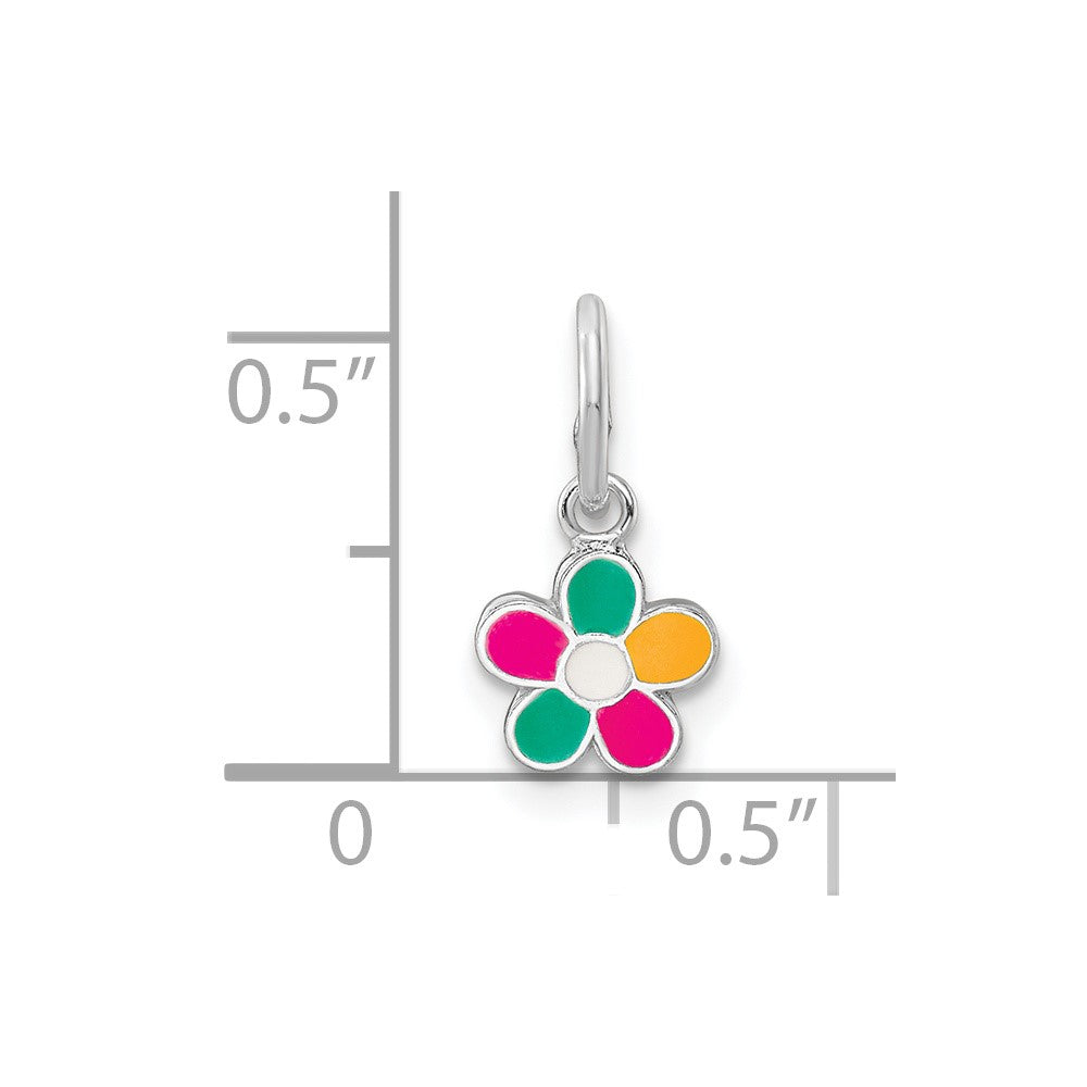 Sterling Silver RH-plated Multi-color Enameled Flower Children's Pendant