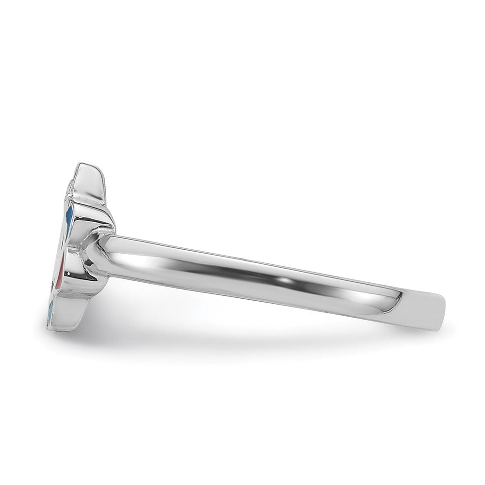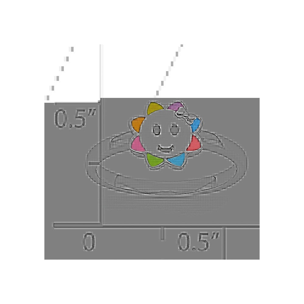 Sterling Silver RH-plated Multi-color Enameled Smiling Sun Children's Ring