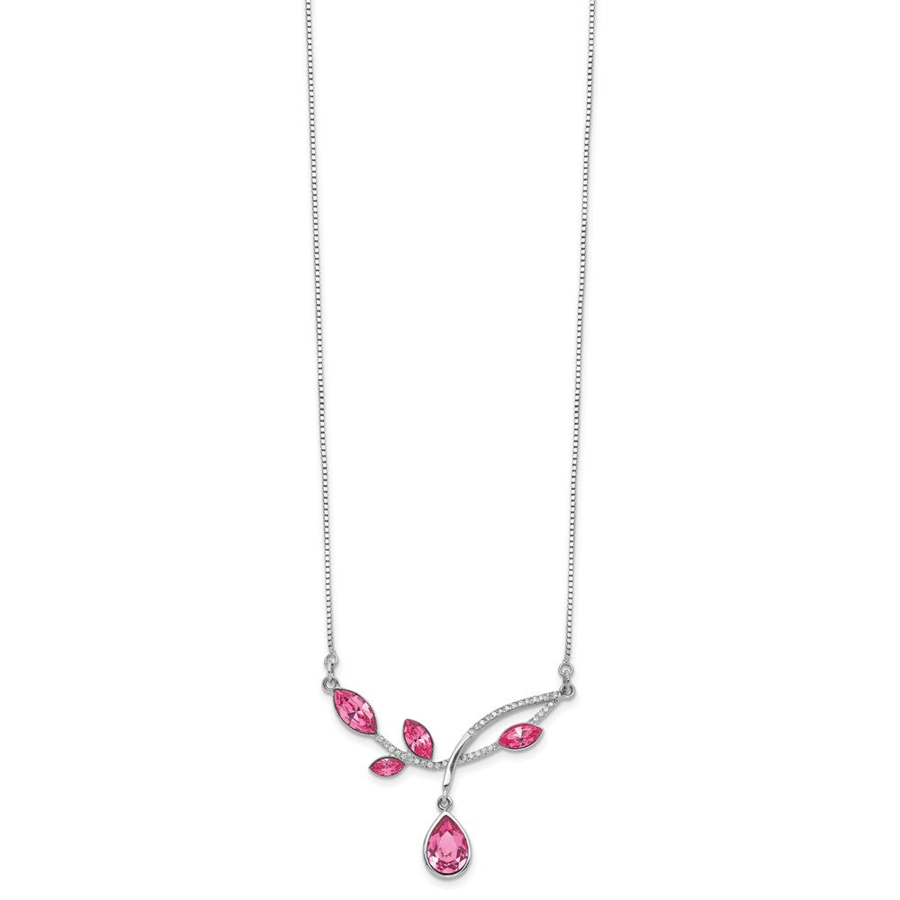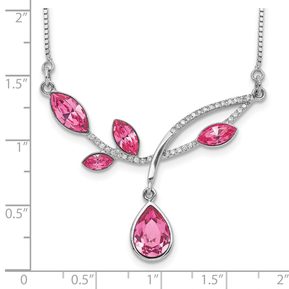 Sterling Silver RH-plated Pink Crystal Branch w/2in ext Necklace