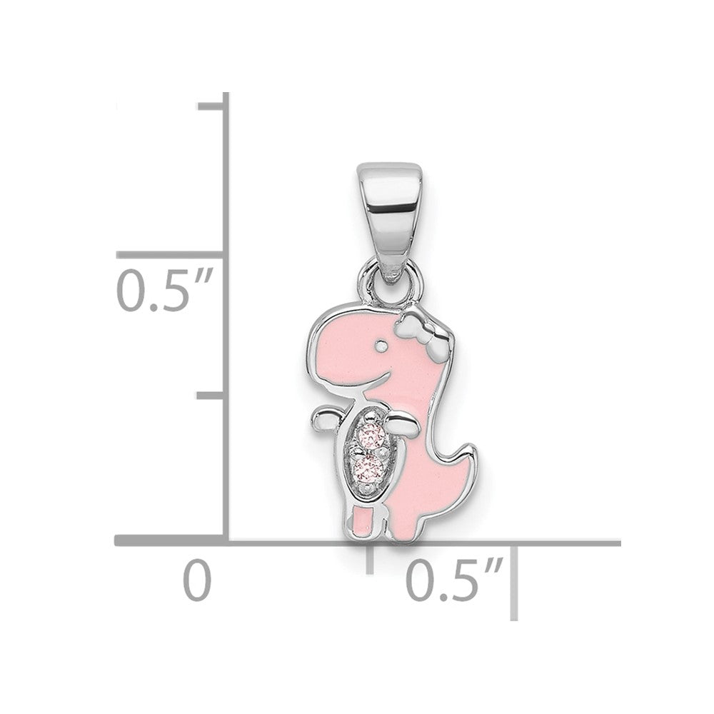 Sterling Silver RH-plated Pink Enamel & CZ Dinosaur Children's Pendant