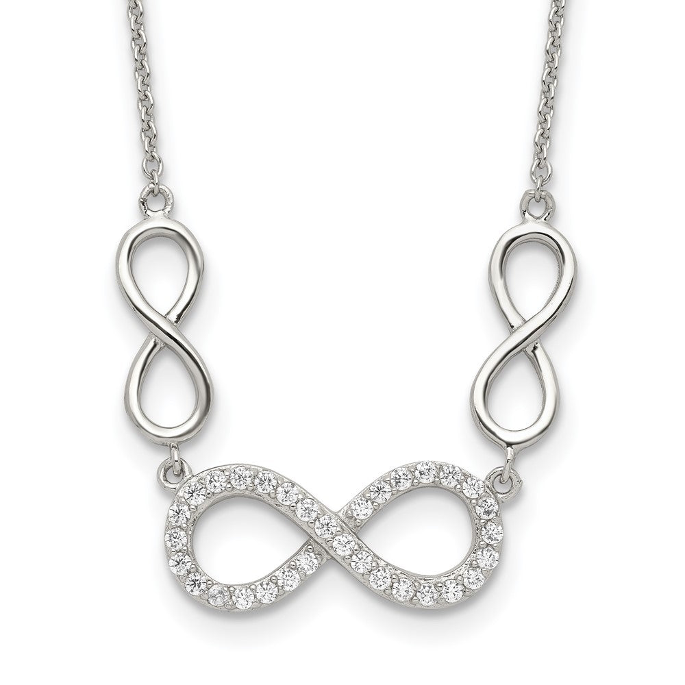 Sterling Silver RH-plated Polished CZ Infinity Symbol Necklace