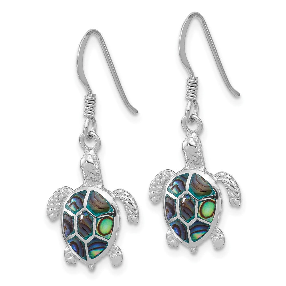 Sterling Silver Rh-plated Polished Paua Shell Turtle Dangle Earrings