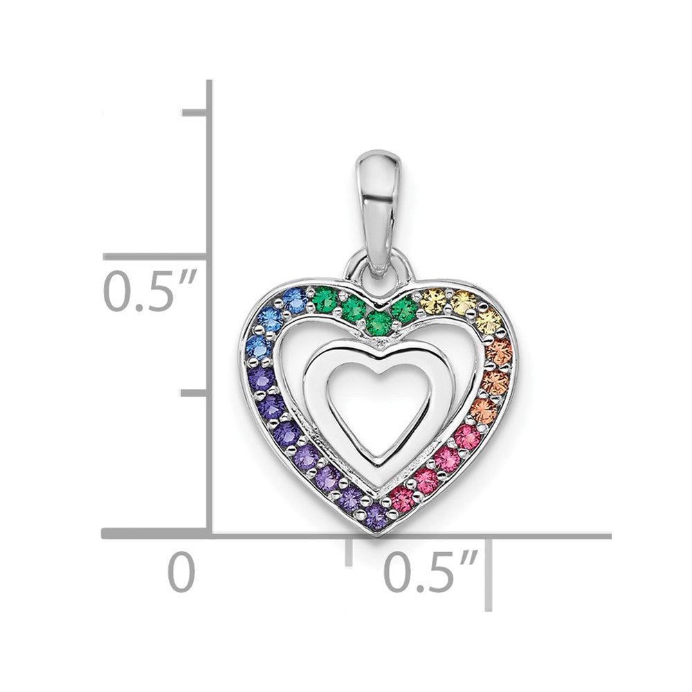 Sterling Silver RH-plated Rainbow Crystal Double Heart Children's Pendant