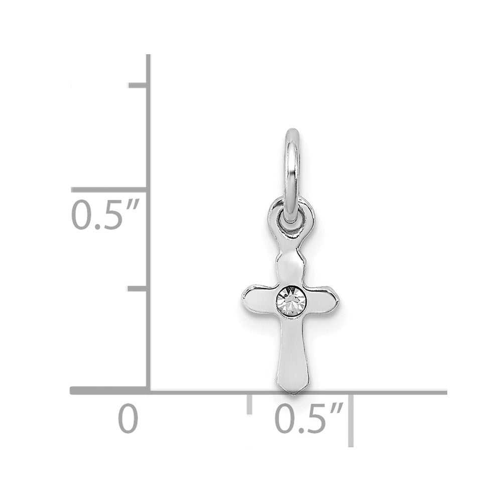 Sterling Silver RH-pltd Child's Apr Clear Preciosca Crystal Cross Pendant