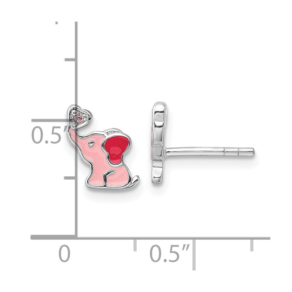 Sterling Silver RH-pltd Pink Enamel & CZ Elephant Children's Post Earrings