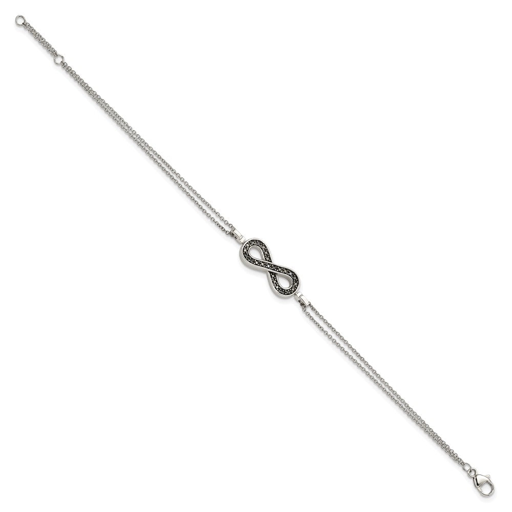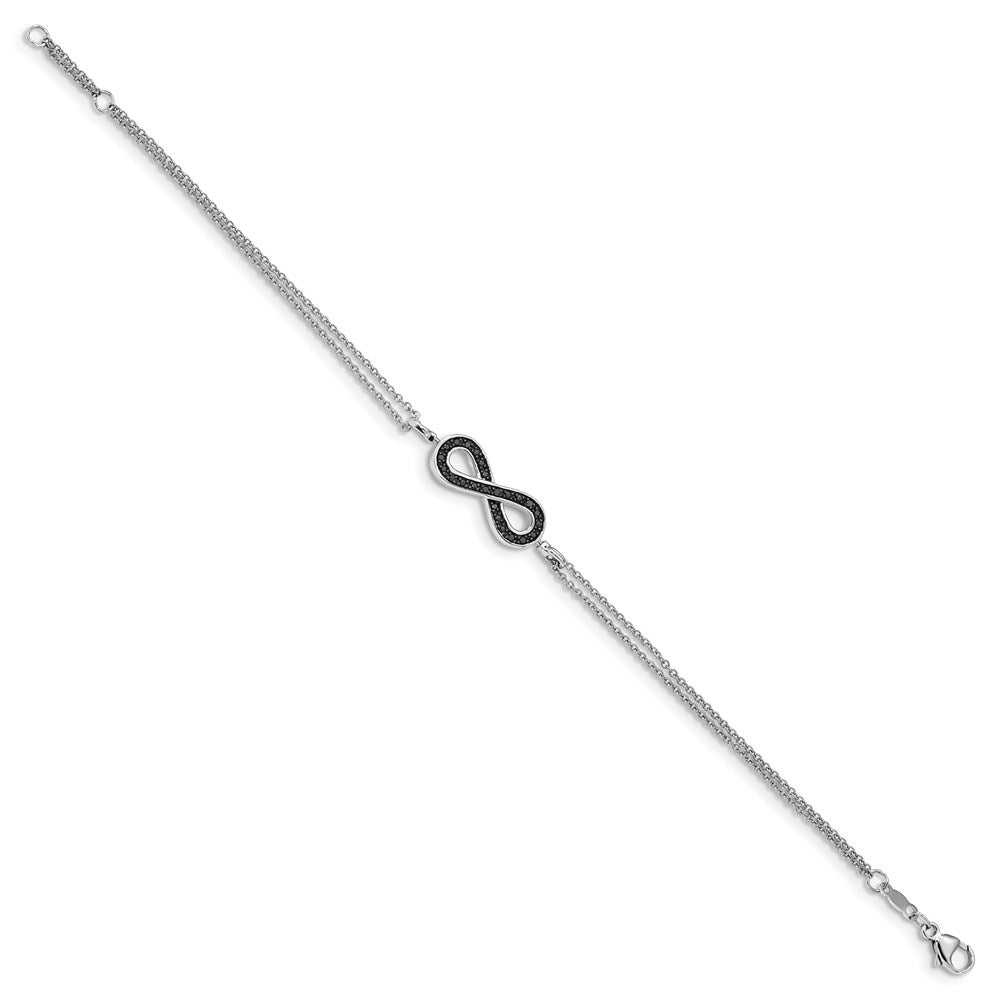 Sterling Silver Rhod 0.. Blk/Wht Dia. Rvsble Infinty w/.5in ext. Bracele