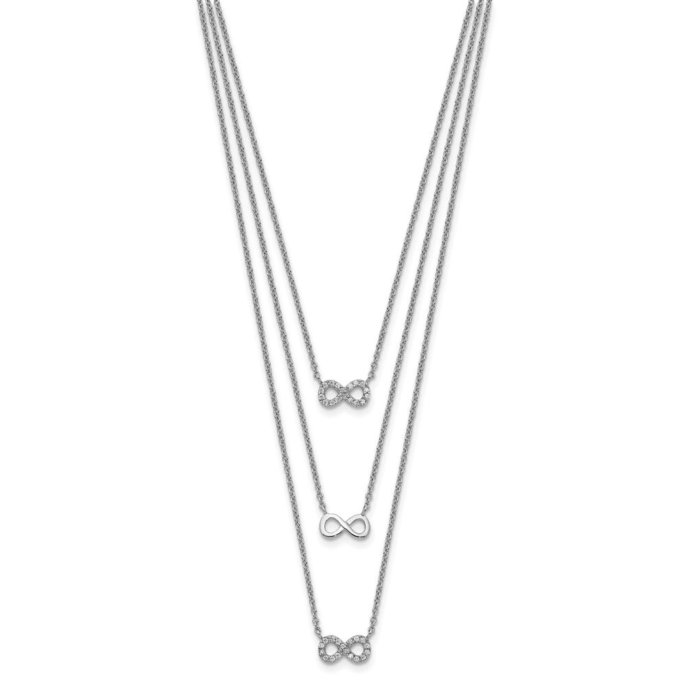 Sterling Silver Rhod-plated 3-Strand CZ Infinity w/2in ext. Necklace