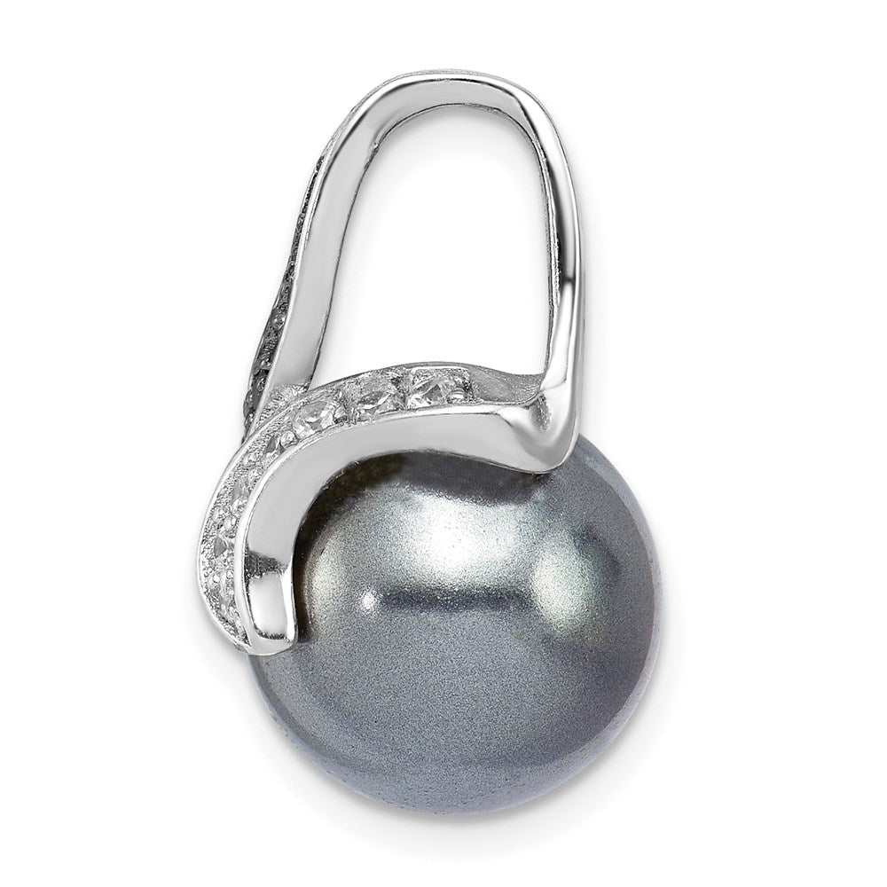 Sterling Silver Rhod-plated Blk/Wht CZ Blk Imitation Shell Pearl Pendant