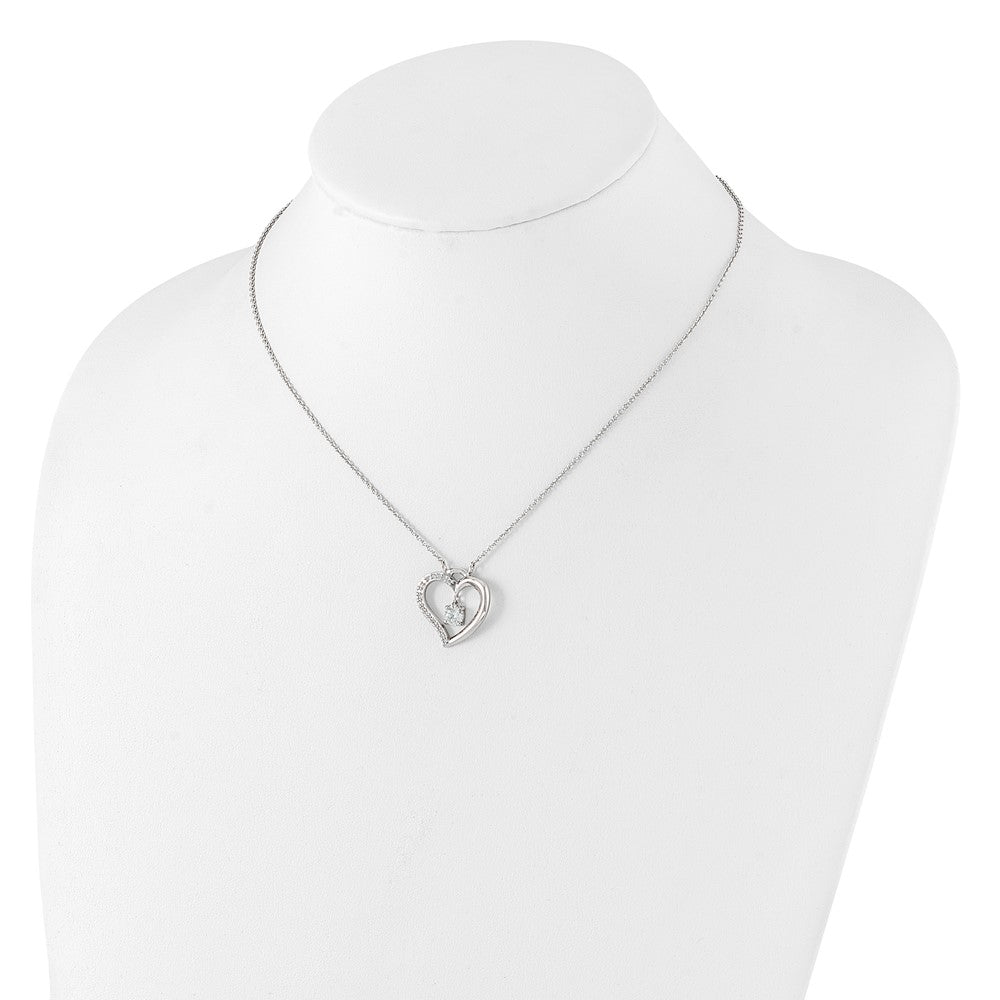 Sterling Silver Rhod-plated Polished CZ Open Heart w/1.25in Ext Necklace
