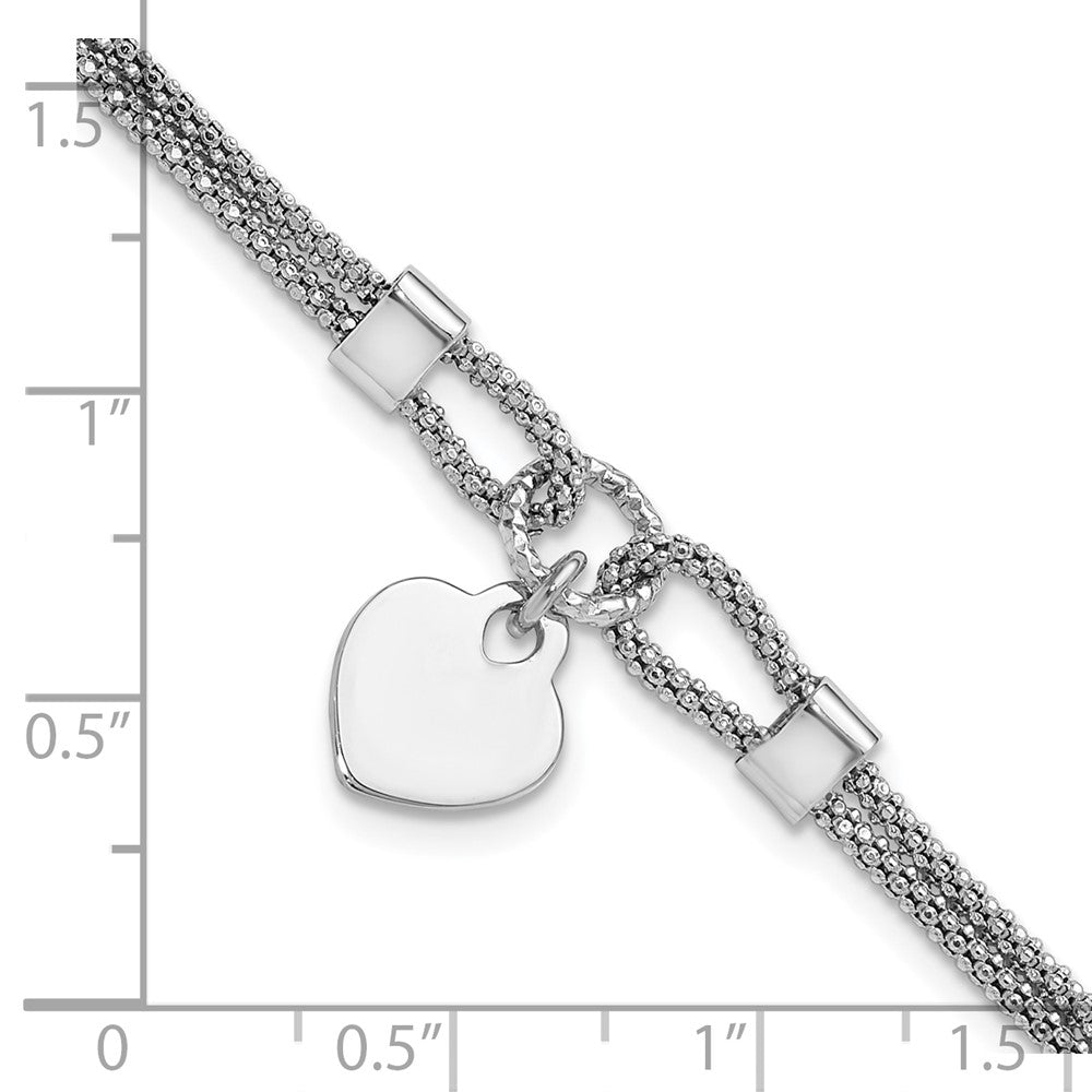 Sterling Silver Rhod-plated Polished Heart Dangle 165.1 mm 1.5in ext Bracelet