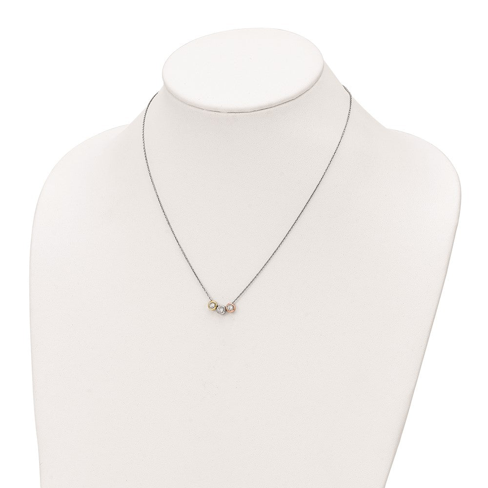 Sterling Silver Rhodium-Plate Gold/Rose-tone Triple Crystal Necklace