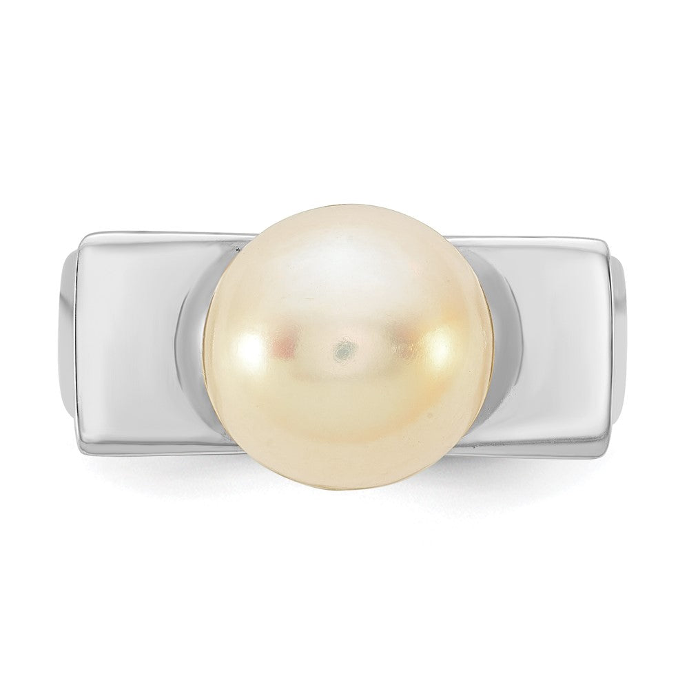 Sterling Silver Rhodium-plated 10- Button White Freshwater Cultured Pearl Square Top Size 8 Ring