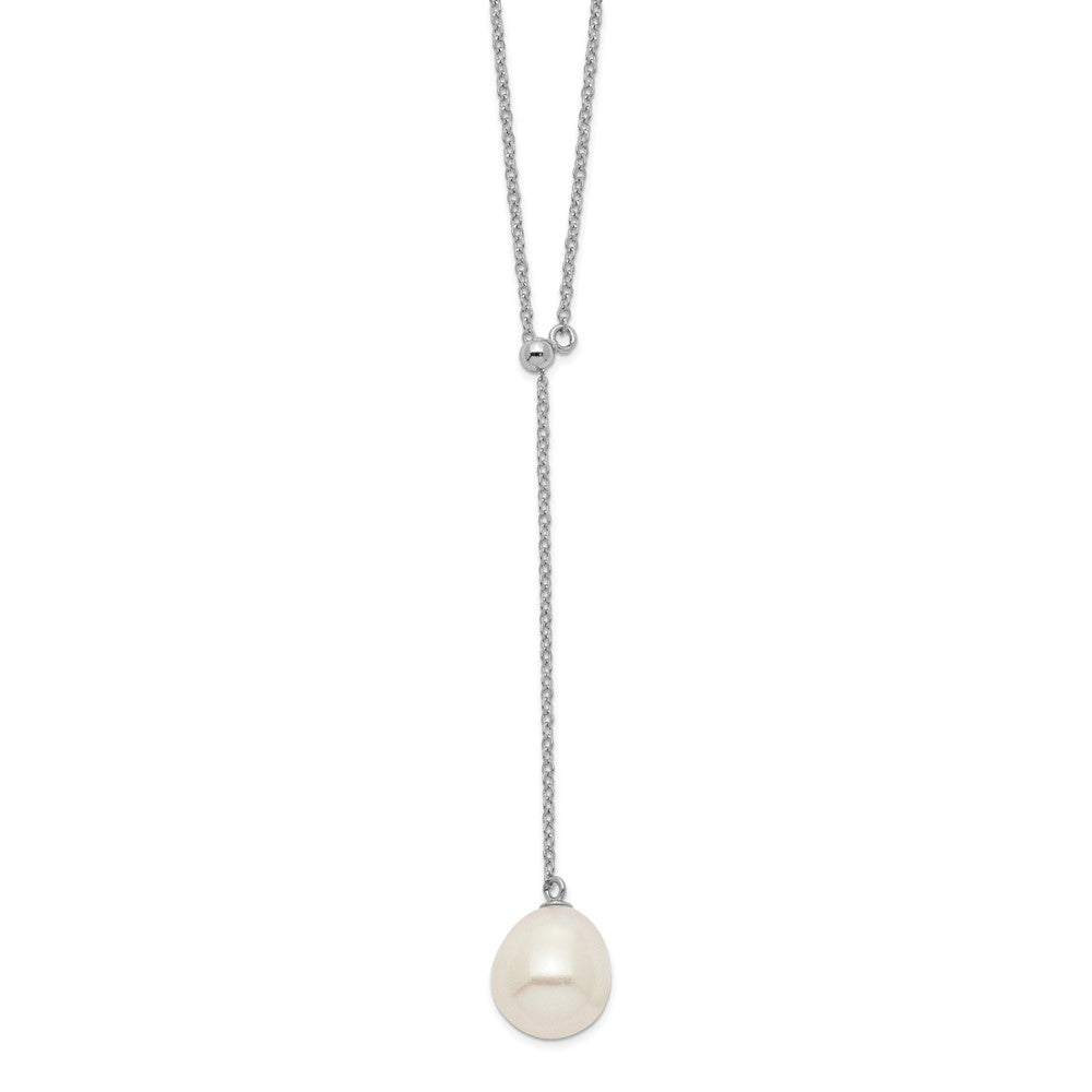 Sterling Silver Rhodium-plated 10- White Rice Freshwater Cultured Pearl Drop 16. Necklace