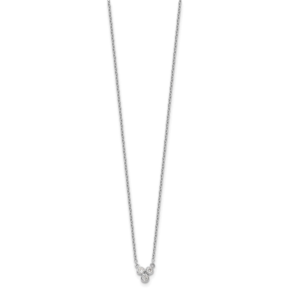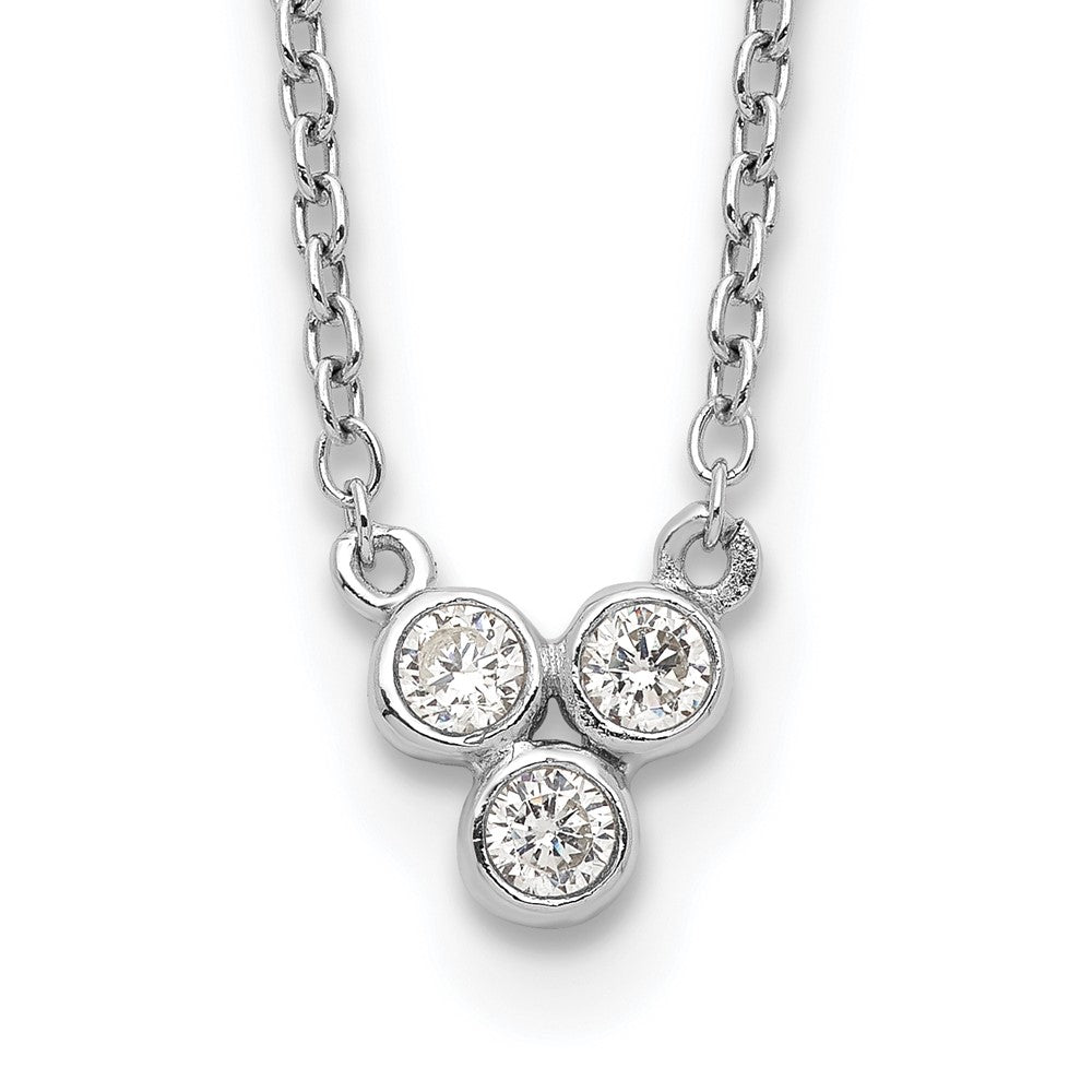 Sterling Silver Rhodium-plated 3-CZ w/ 2in ext Necklace