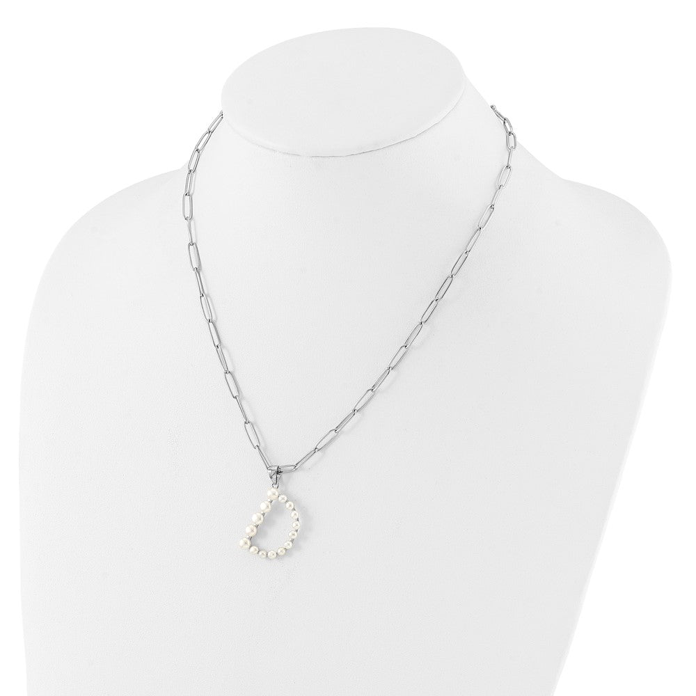 Sterling Silver Rhodium-plated 3- White Button Freshwater Cultured Pearl LETTER D Necklace