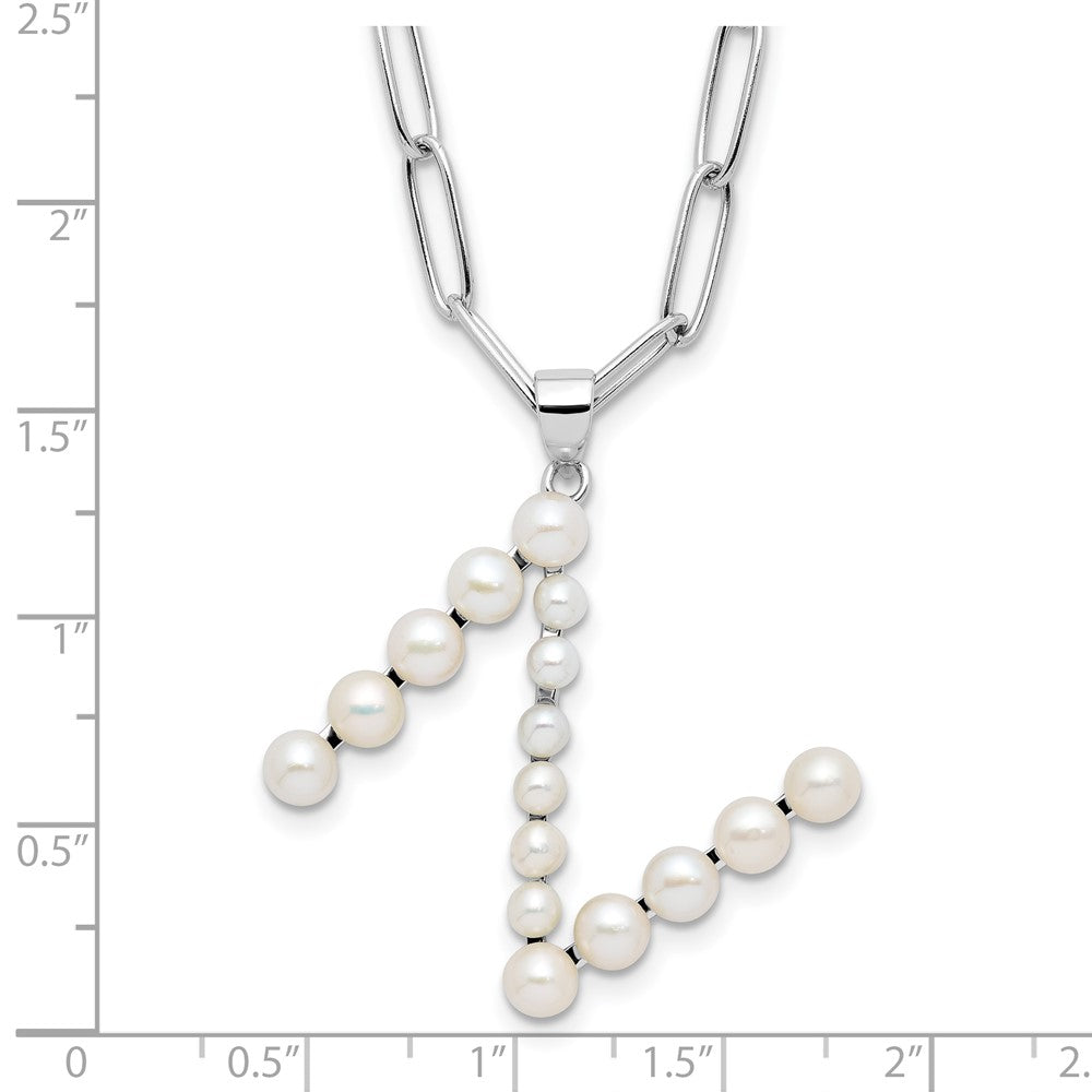Sterling Silver Rhodium-plated 3- White Button Freshwater Cultured Pearl LETTER N Necklace