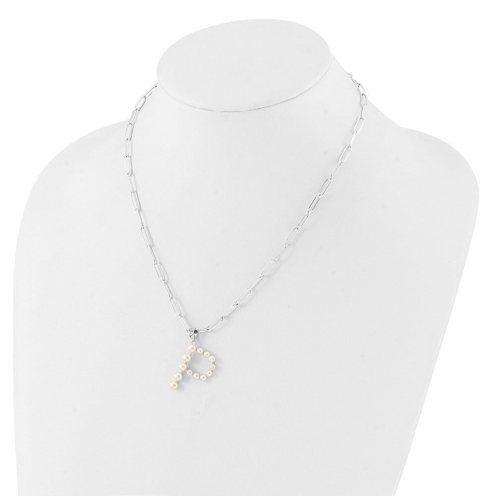 Sterling Silver Rhodium-plated 3- White Button Freshwater Cultured Pearl LETTER P Necklace