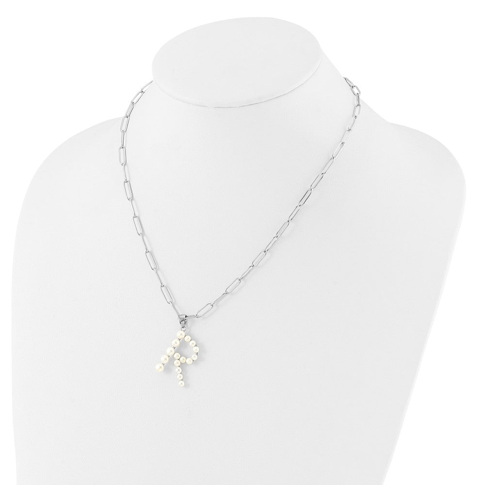 Sterling Silver Rhodium-plated 3- White Button Freshwater Cultured Pearl LETTER R Necklace