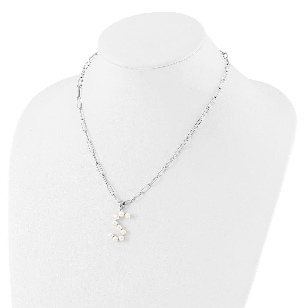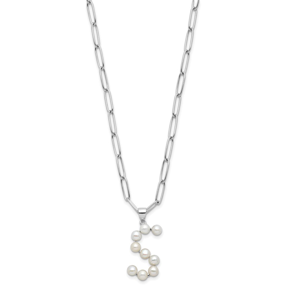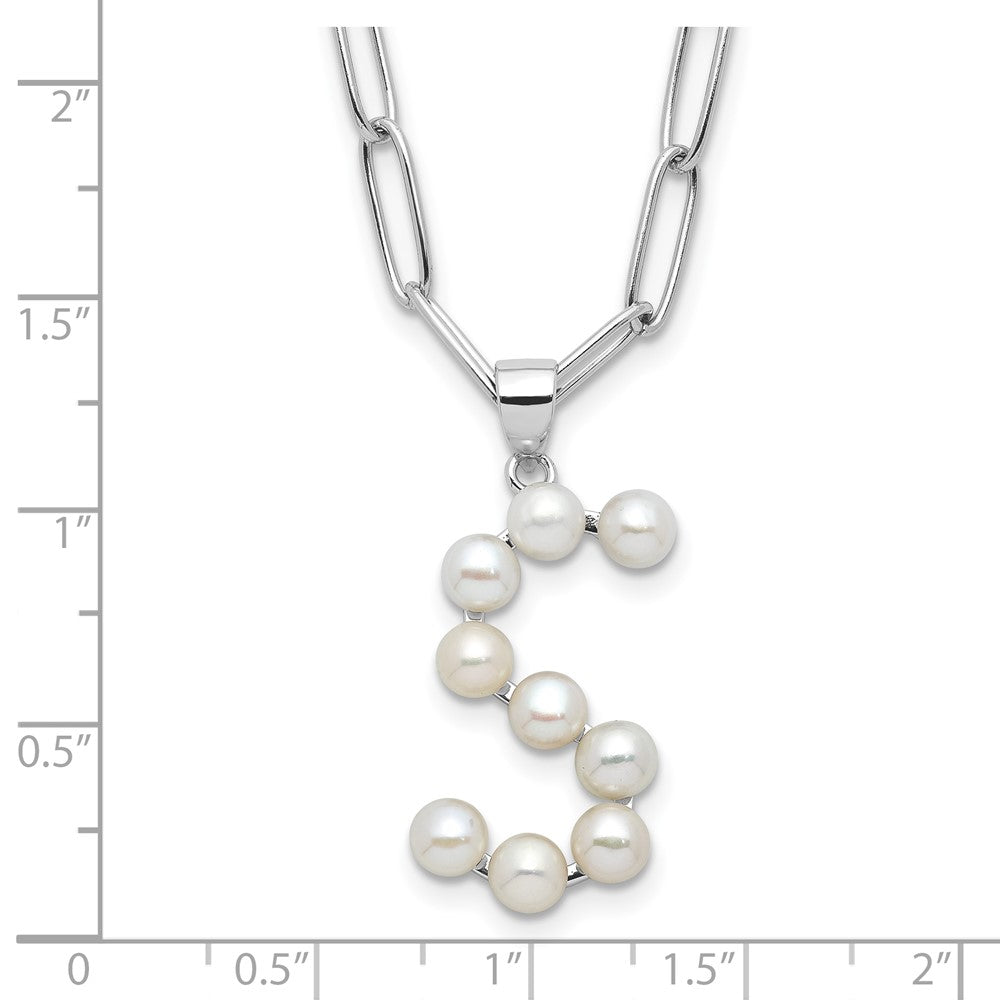 Sterling Silver Rhodium-plated 3- White Button Freshwater Cultured Pearl LETTER S Necklace