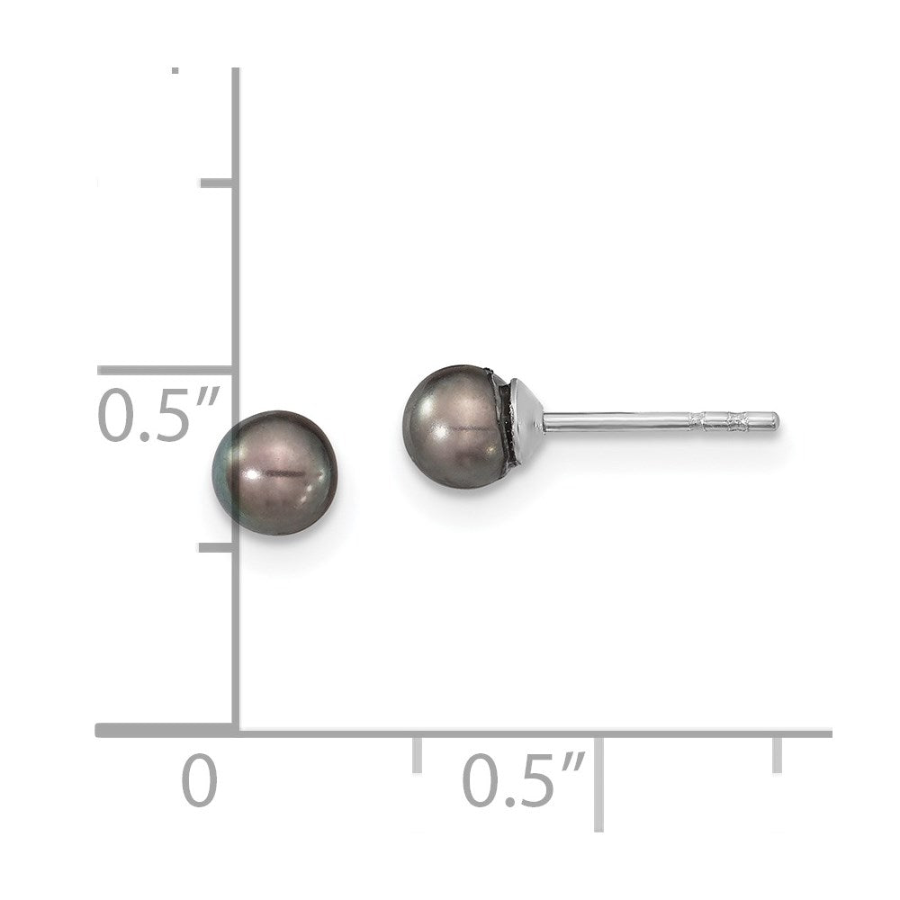 Sterling Silver Rhodium-plated 4-5mm Black Round Freshwater Cultured Pearl Post Earrings