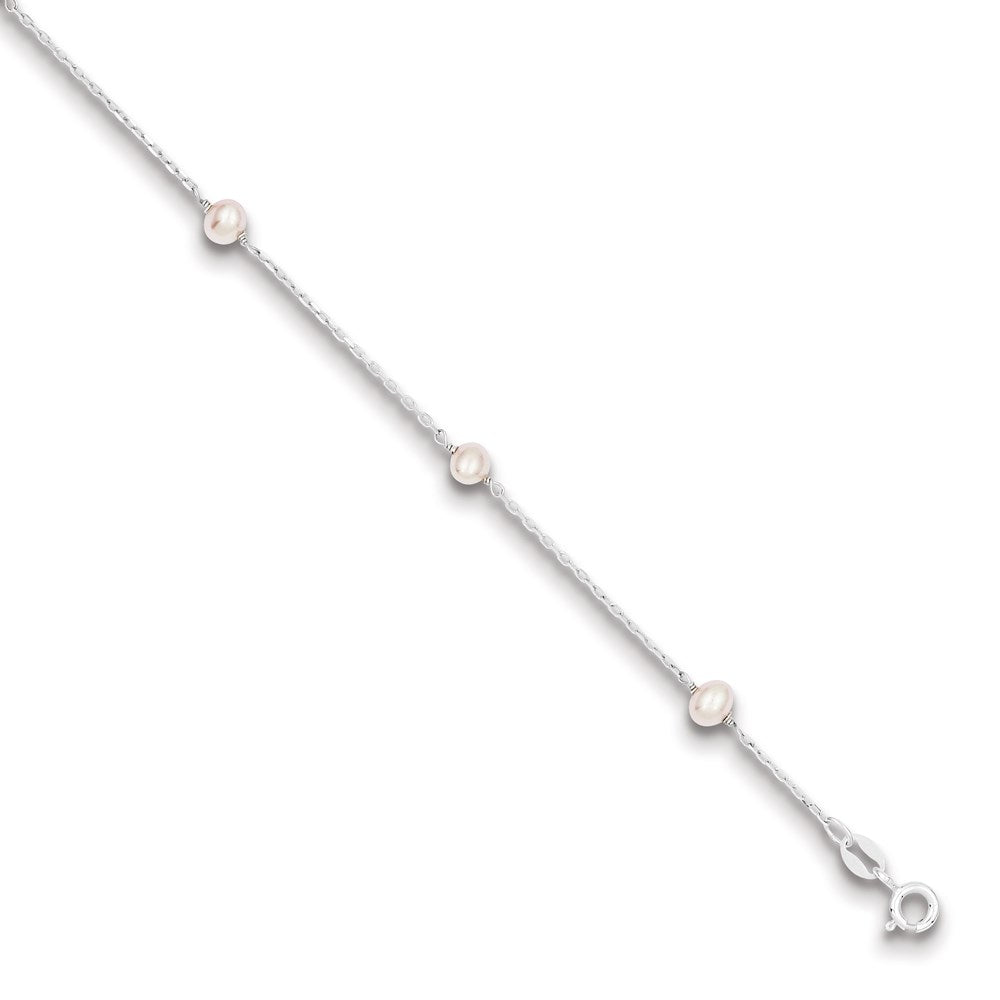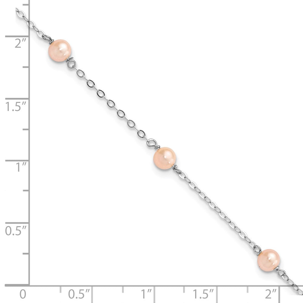 Sterling Silver Rhodium-plated 4-5mm Pink Semi-Round Freshwater Cultured Pearl 3-Station 5 inch with 1 inch Extension Children's Bracelet