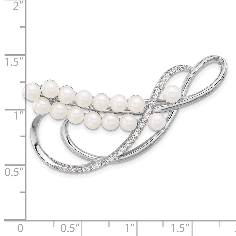 Sterling Silver Rhodium-plated 4- White Round Freshwater Cultured Pearl and CZ Pin