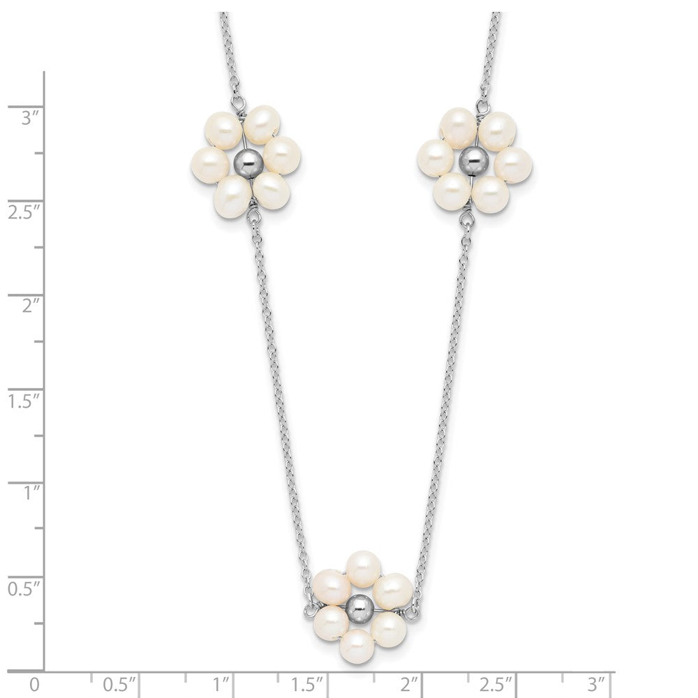 Sterling Silver Rhodium-plated 4- White Semi-Round Freshwater Cultured Pearl Flower with 1. Extension Necklace