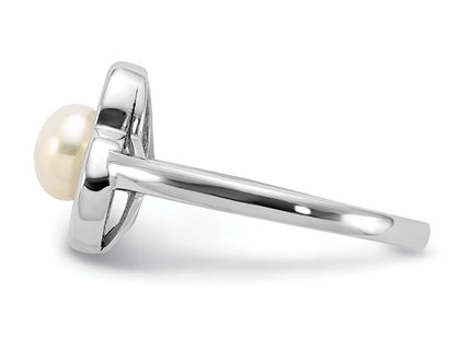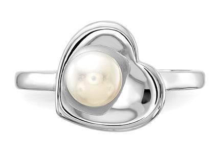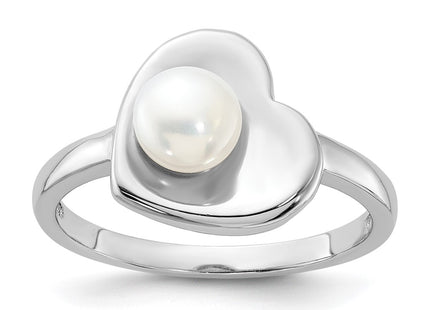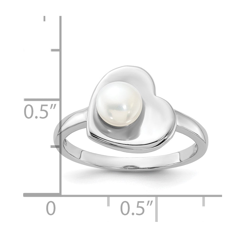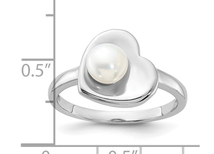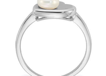 Sterling Silver Rhodium-plated 5- White Freshwater Cultured Pearl Heart Ring
