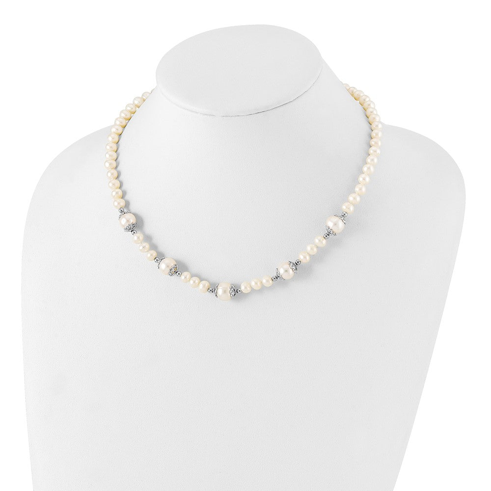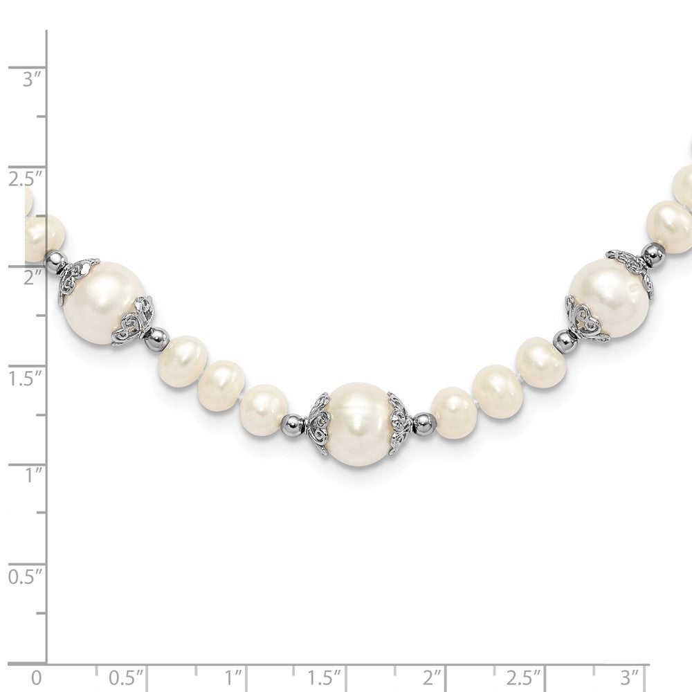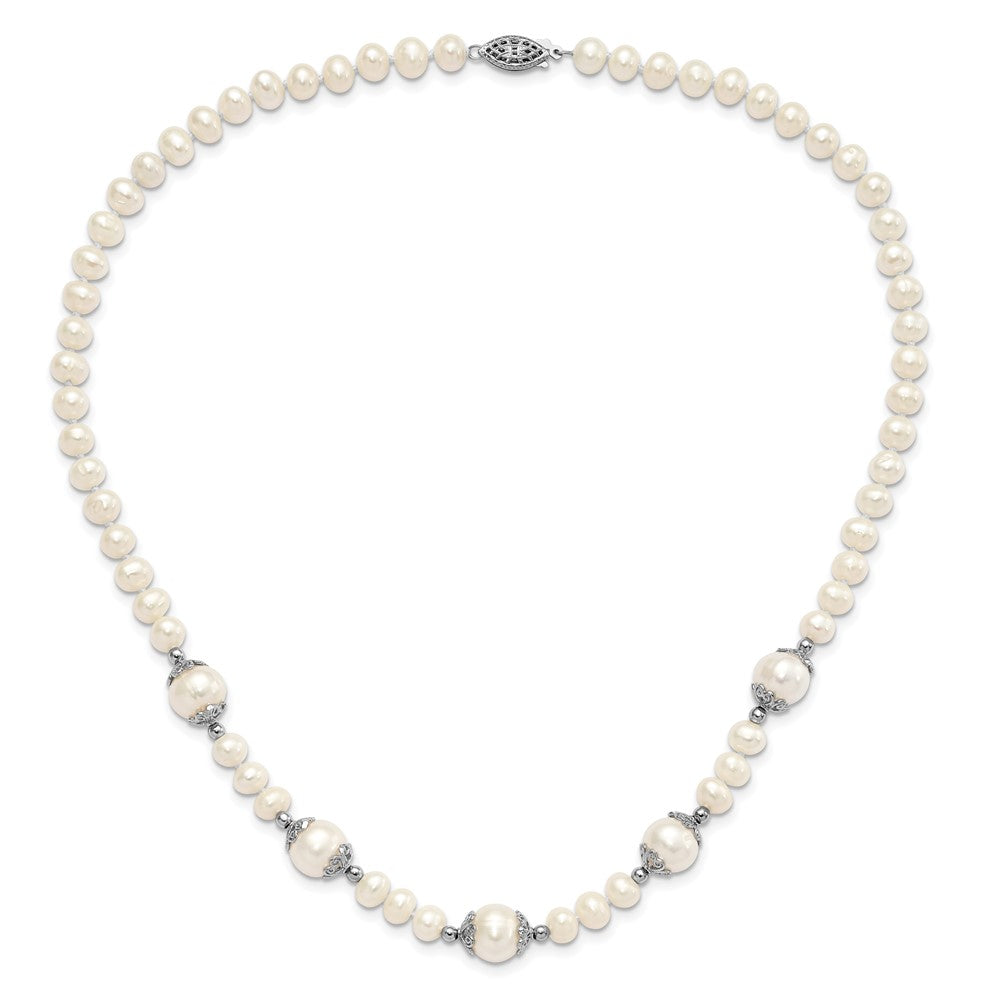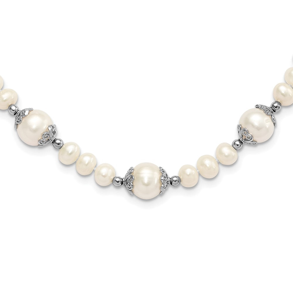 Sterling Silver Rhodium-plated 6- White Freshwater Cultured Pearl 5-station Necklace