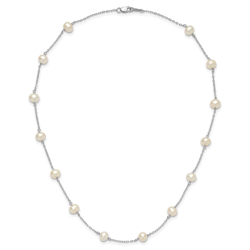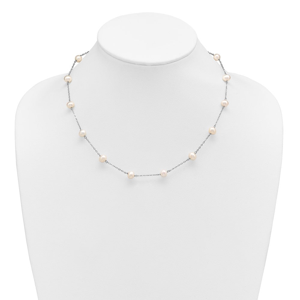 Sterling Silver Rhodium-plated 6- White Near-Round Freshwater Cultured Pearl 14-Station Necklace