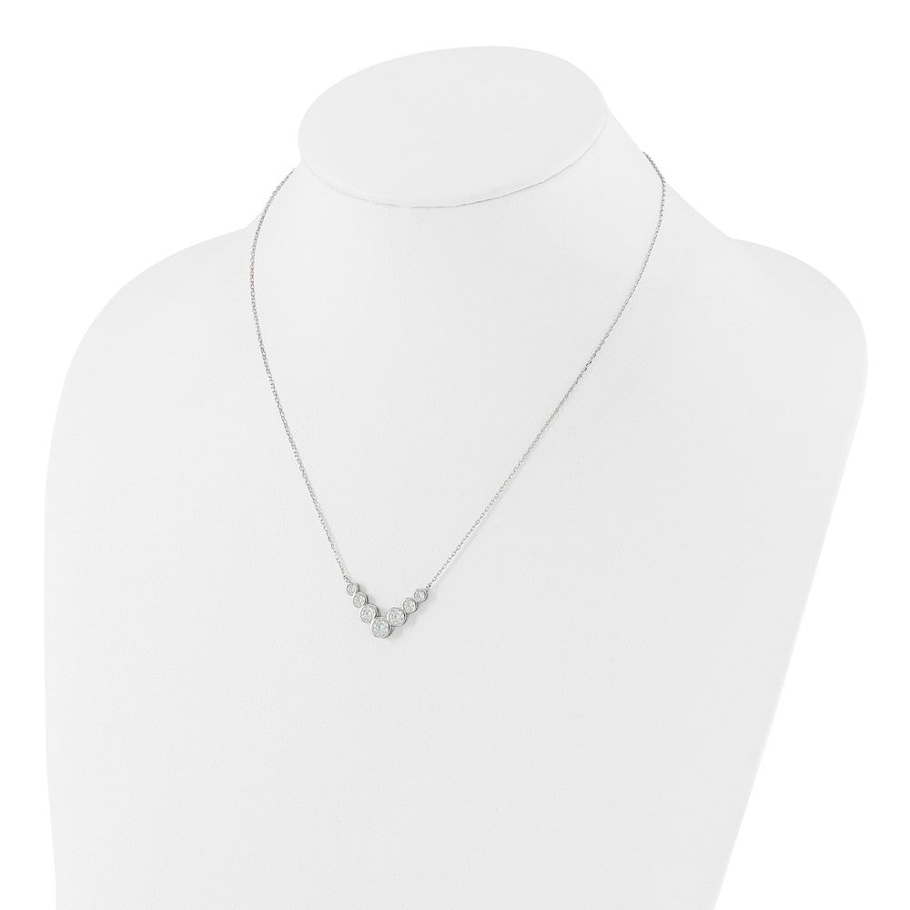 Sterling Silver Rhodium-plated 7 Bezel Set CZ 18in w/2in ext. Necklace