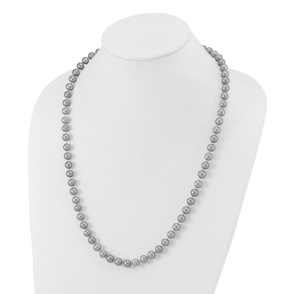 Sterling Silver Rhodium-plated 7-8mm Grey Near-Round Freshwater Cultured Pearl 20 inch Necklace