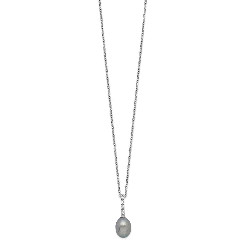 Sterling Silver Rhodium-plated 7- Grey Teardrop Freshwater Cultured Pearl and CZ Necklace