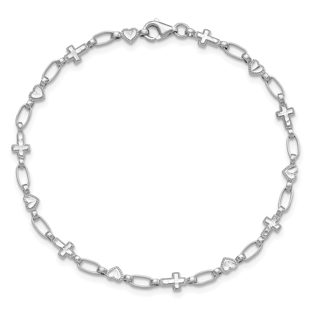 Sterling Silver Rhodium-plated 7. Heart and Cross Bracelet