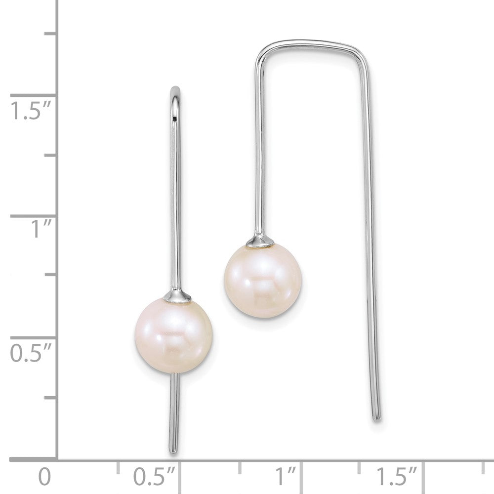Sterling Silver Rhodium-plated 7- Round White Freshwater Cultured Pearl Squared Threader Earrings
