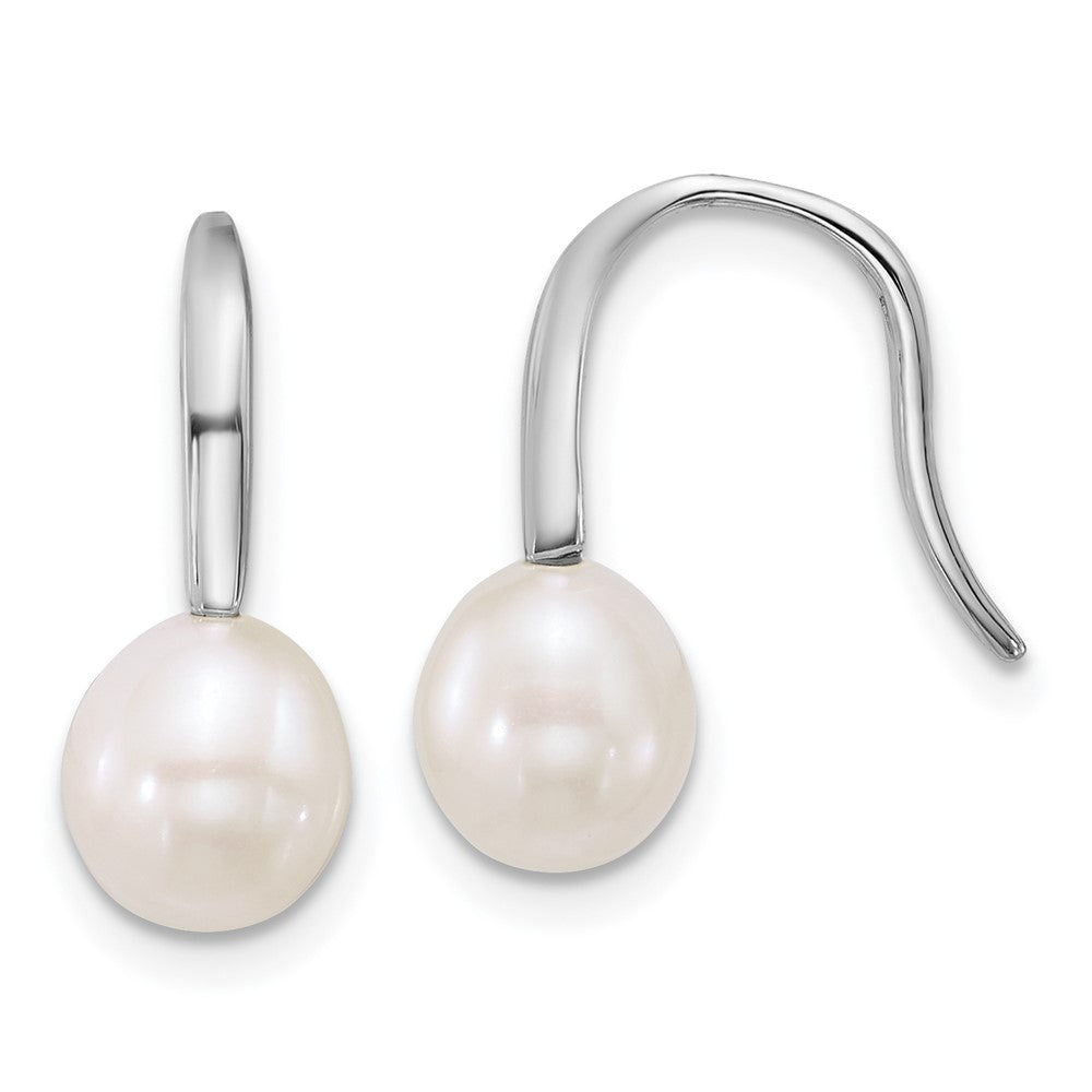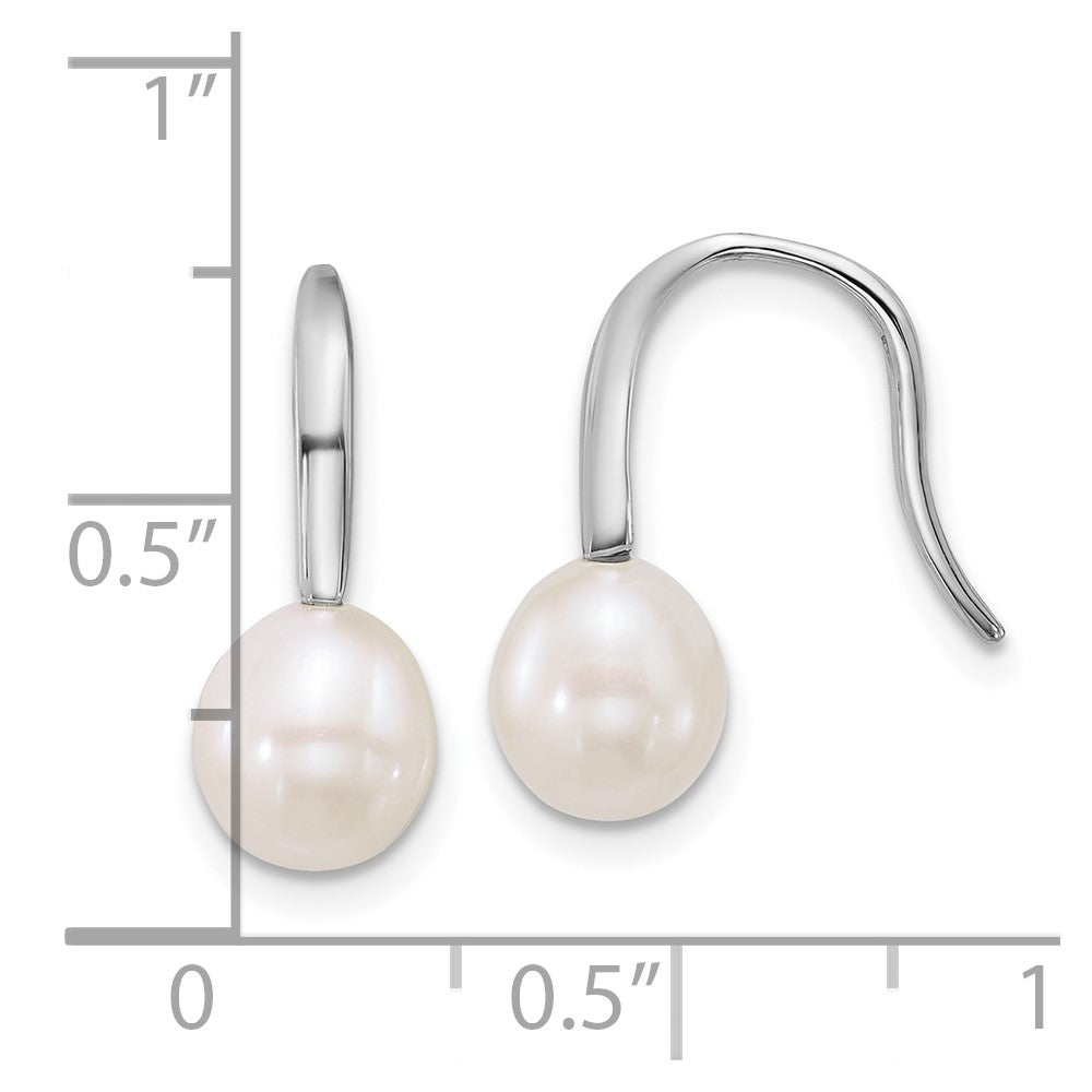 Sterling Silver Rhodium-plated 7- Teardrop White Freshwater Cultured Pearl Dangle Shepherd Hook Earrings