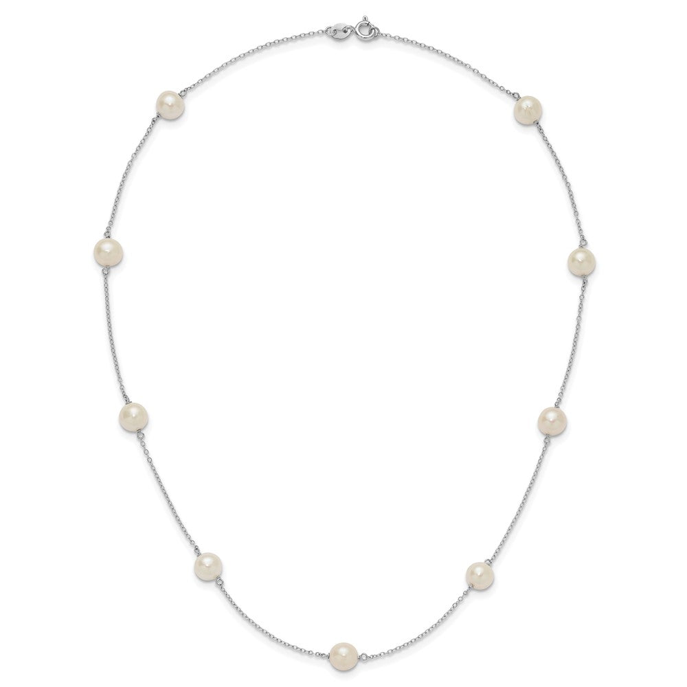 Sterling Silver Rhodium-plated 7- White Near-Round Freshwater Cultured Pearl 9-Stations18 inch Necklace